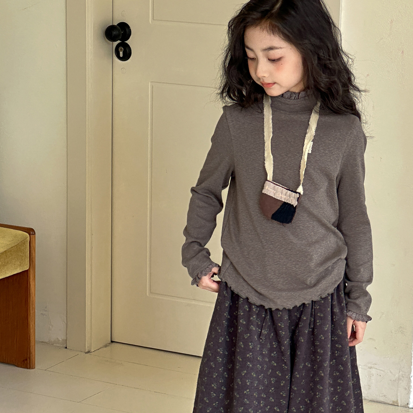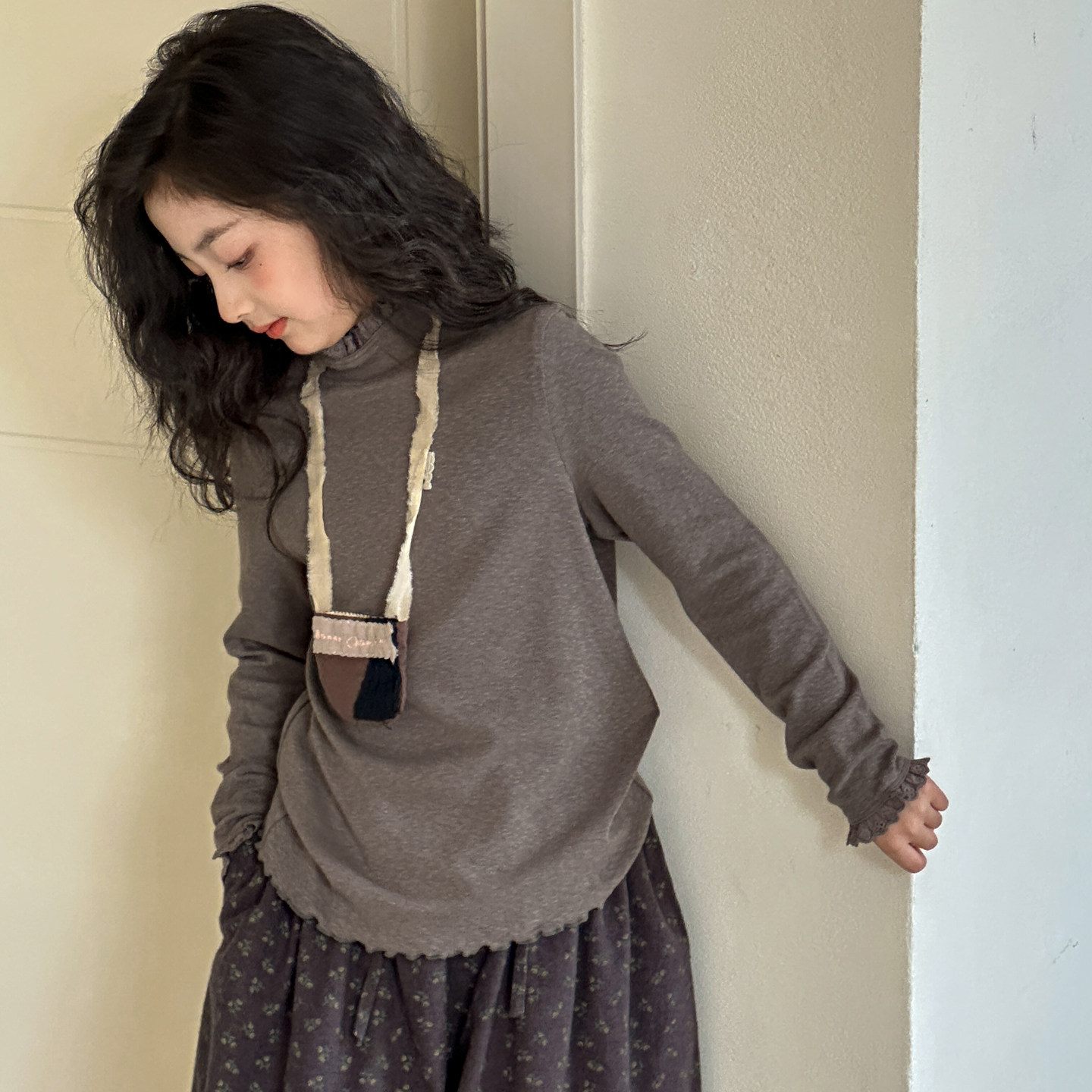 女童长袖T恤春装新款初中生春秋加厚内搭上衣女大童木耳边打底衫