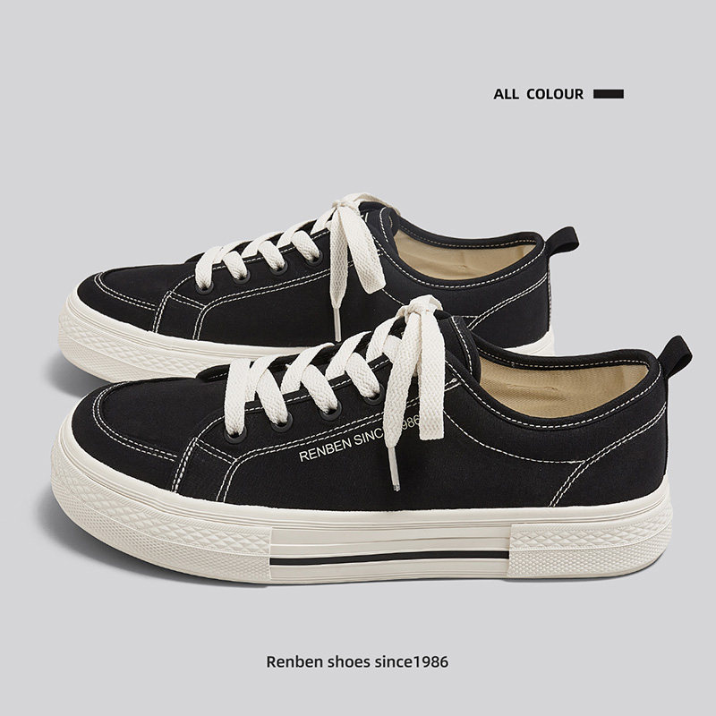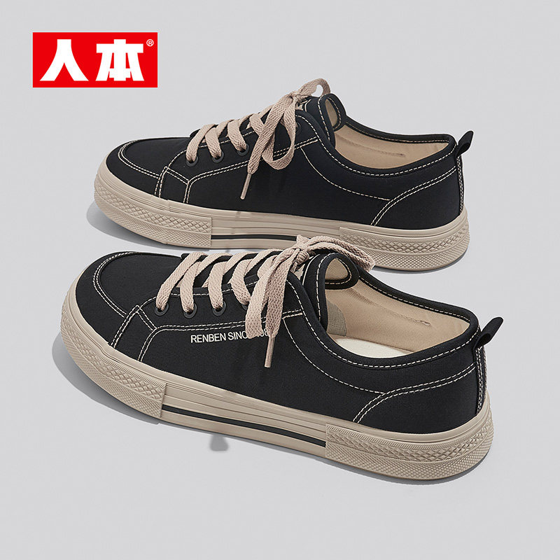 人本官方旗舰店正品男鞋厚底帆布鞋2026新款男士百搭休闲板鞋情侣