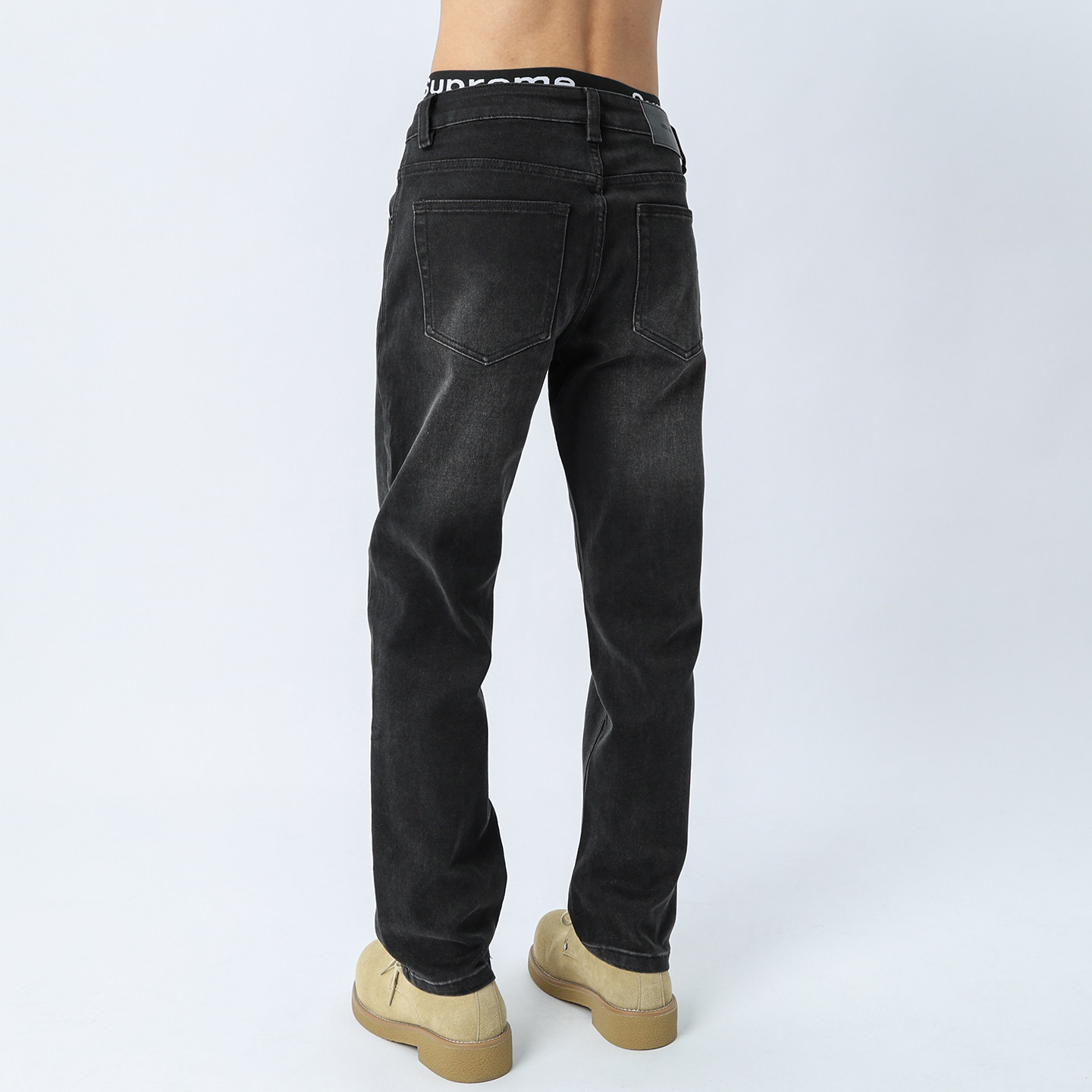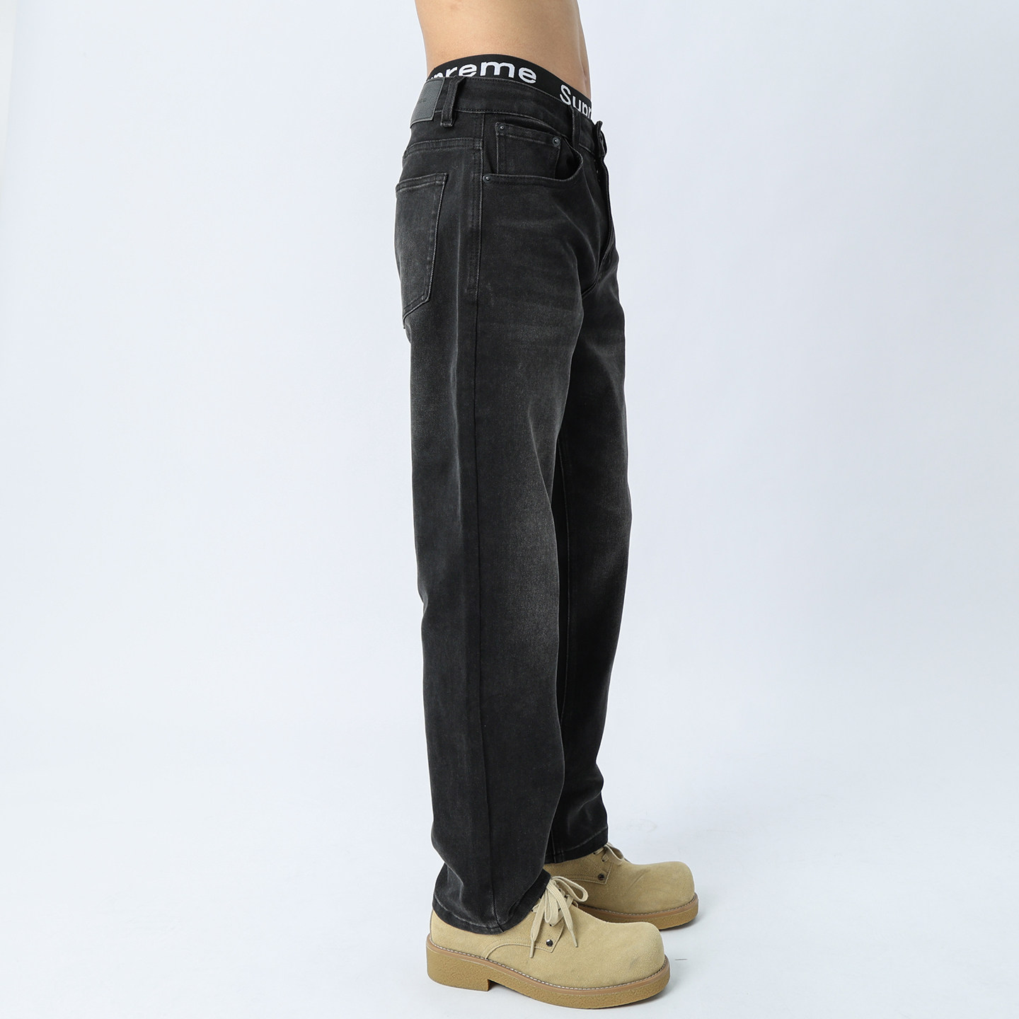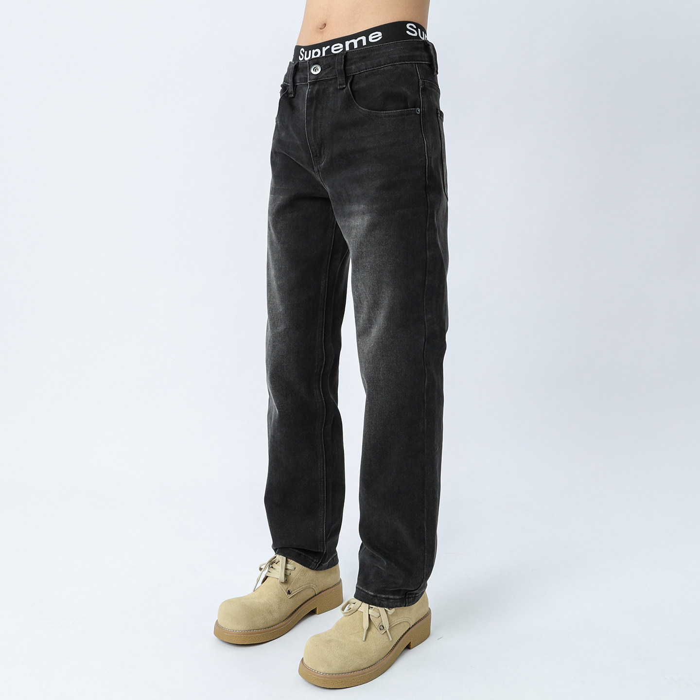 黑灰色牛仔裤2026新款男士窄版直筒裤复古修身潮牌高端休闲长裤子