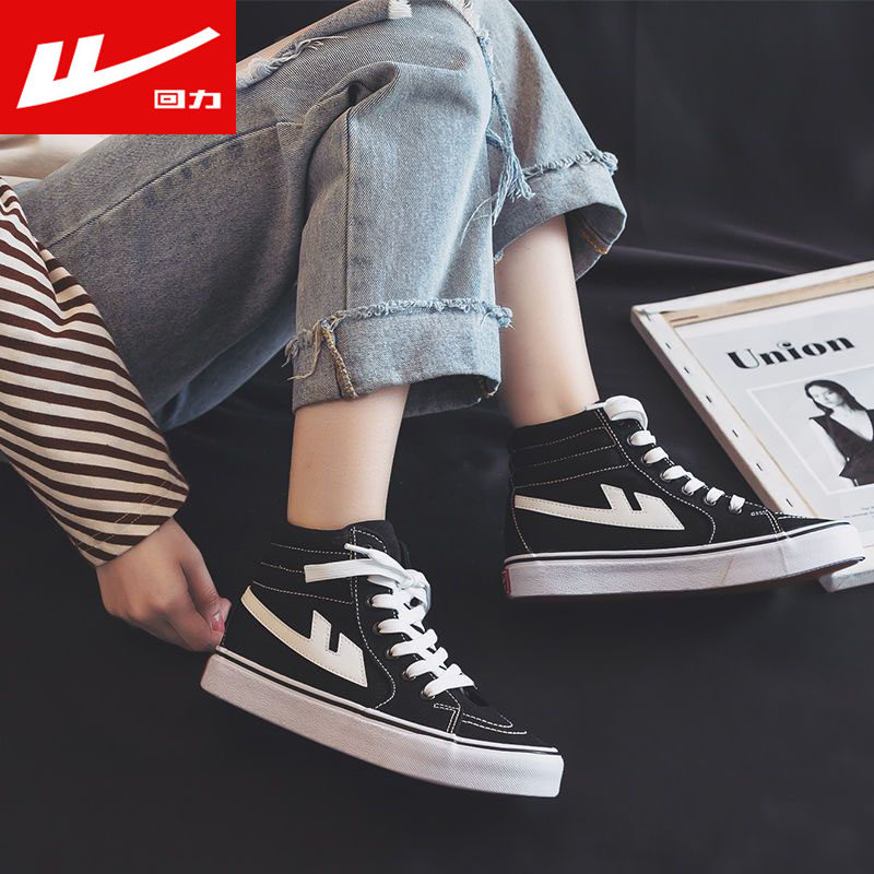 回力女鞋黑色帆布鞋2026春夏季新款高帮鞋子学生百搭休闲板鞋ins