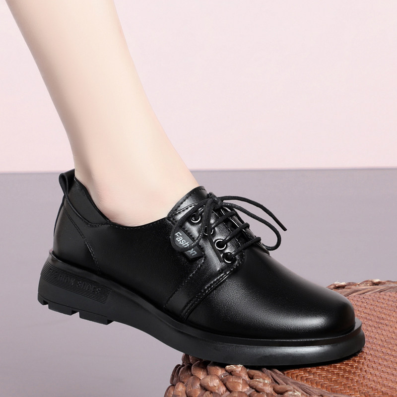 意尔康2026春季新款女鞋正品真皮女单鞋休闲时尚中跟妈妈鞋牛皮鞋