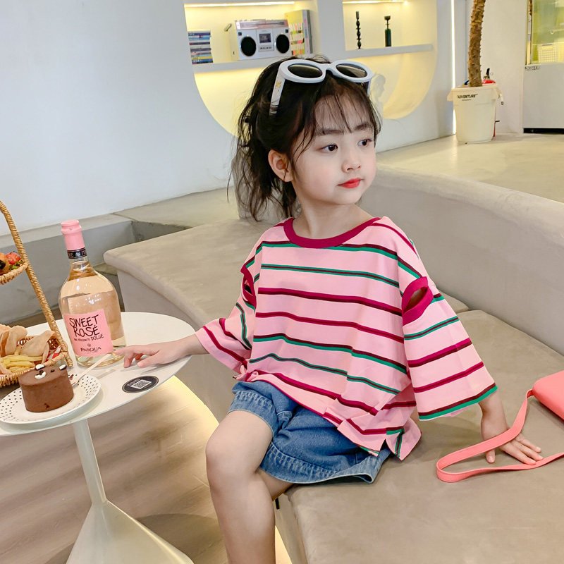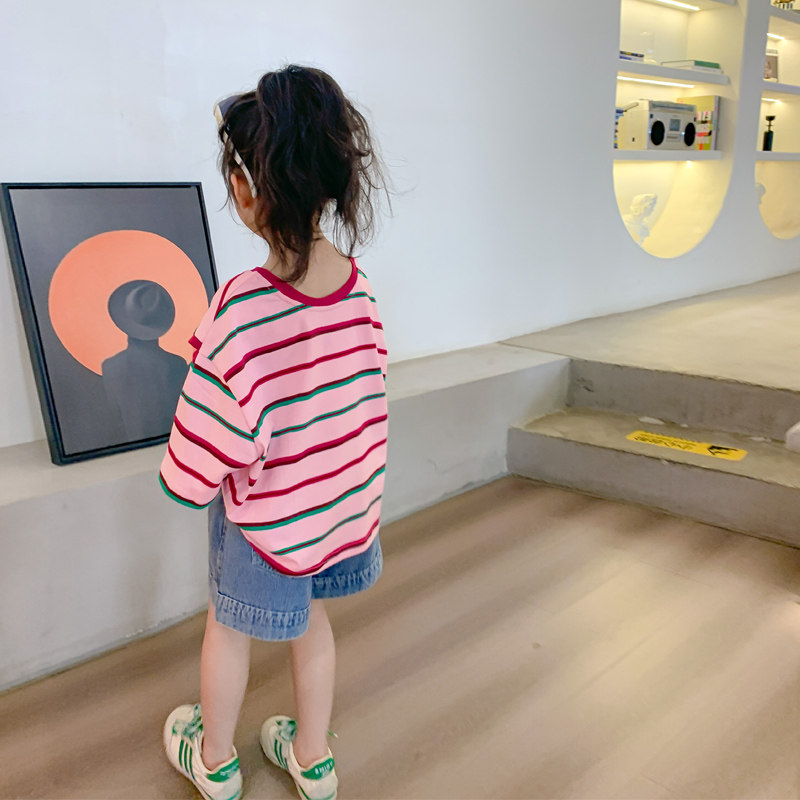 女童条纹短袖T恤春装2026新款儿童韩版休闲上衣女孩早春打底衫潮