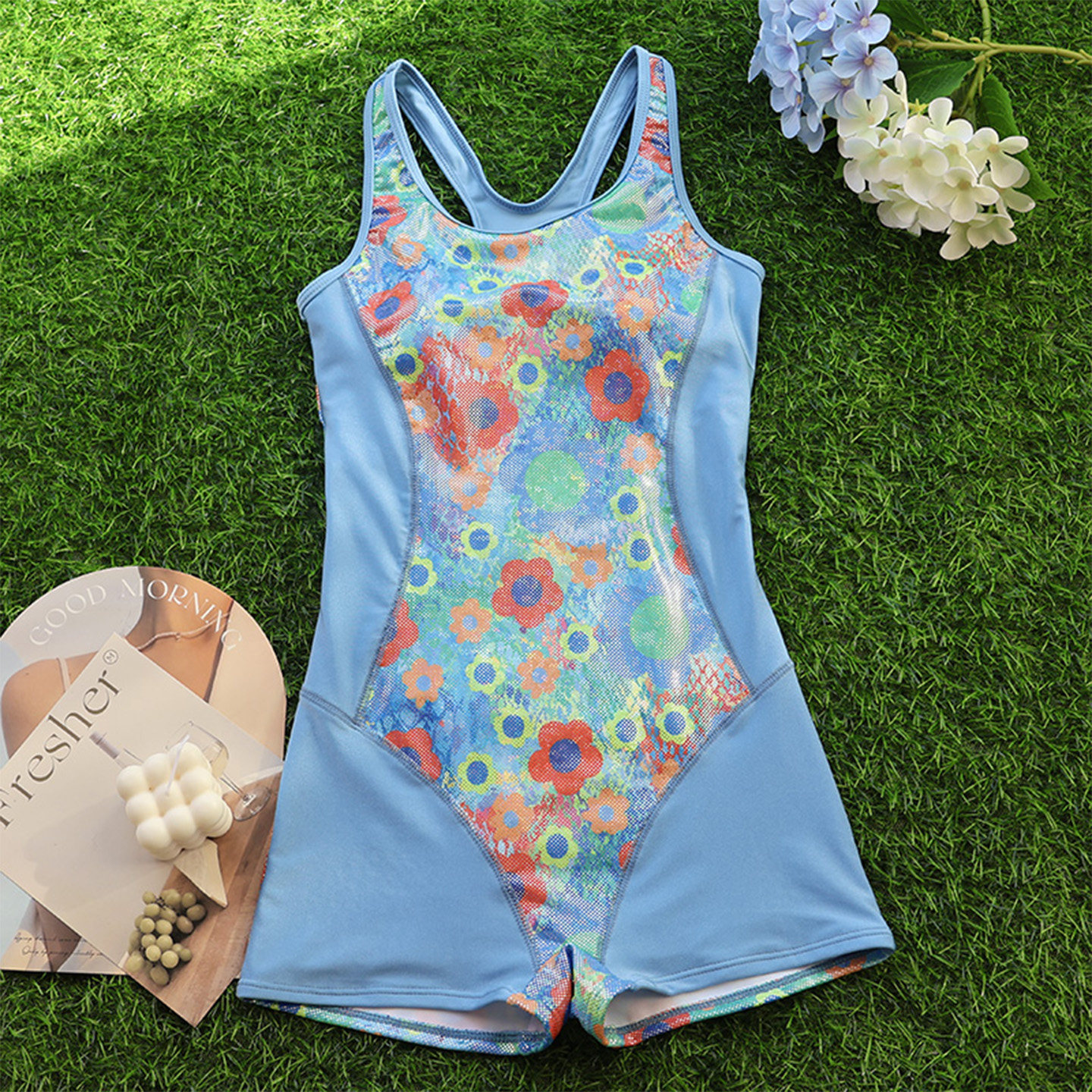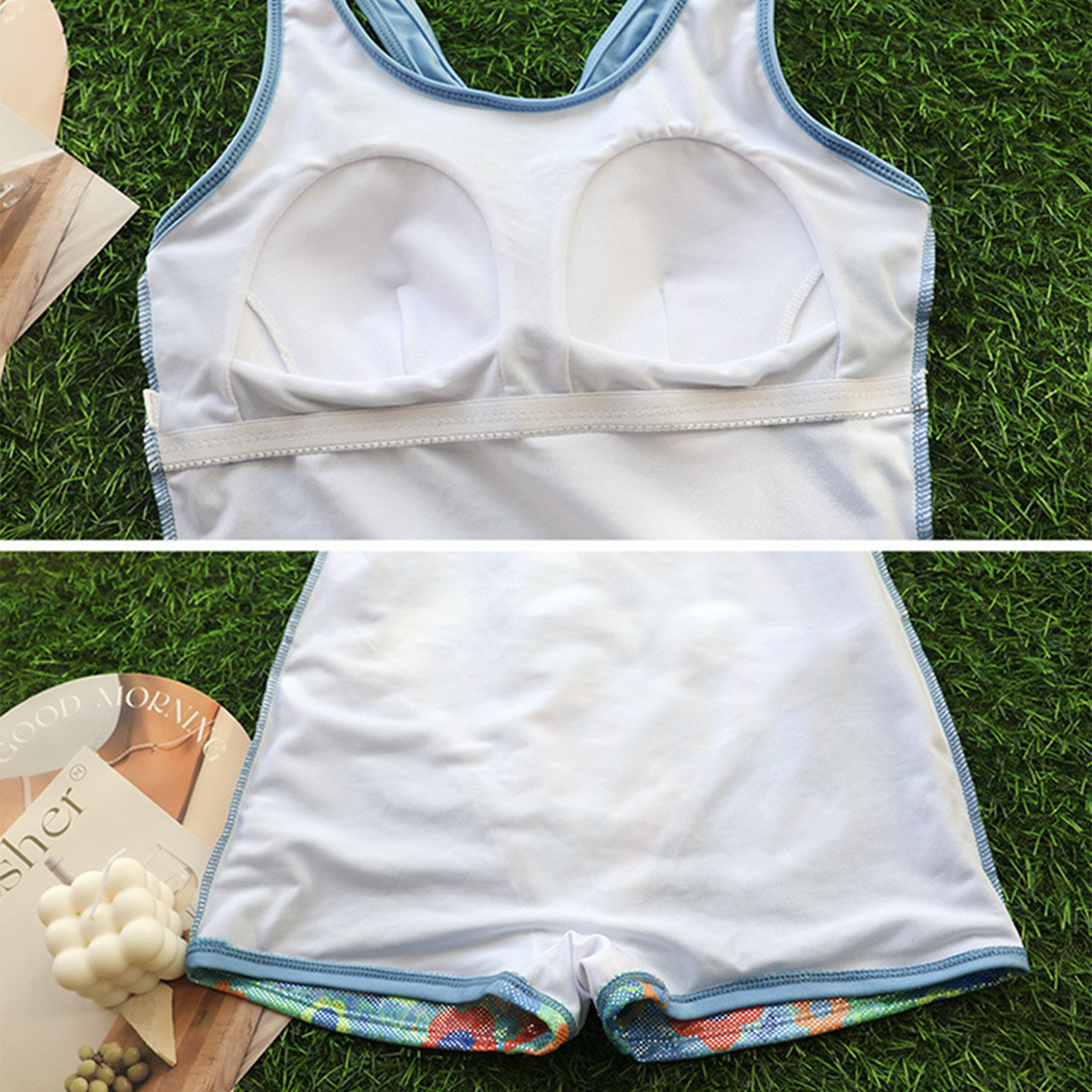 儿童泳衣女孩三角竞速连体泳衣训练速干时尚可爱中大童带胸垫泳衣