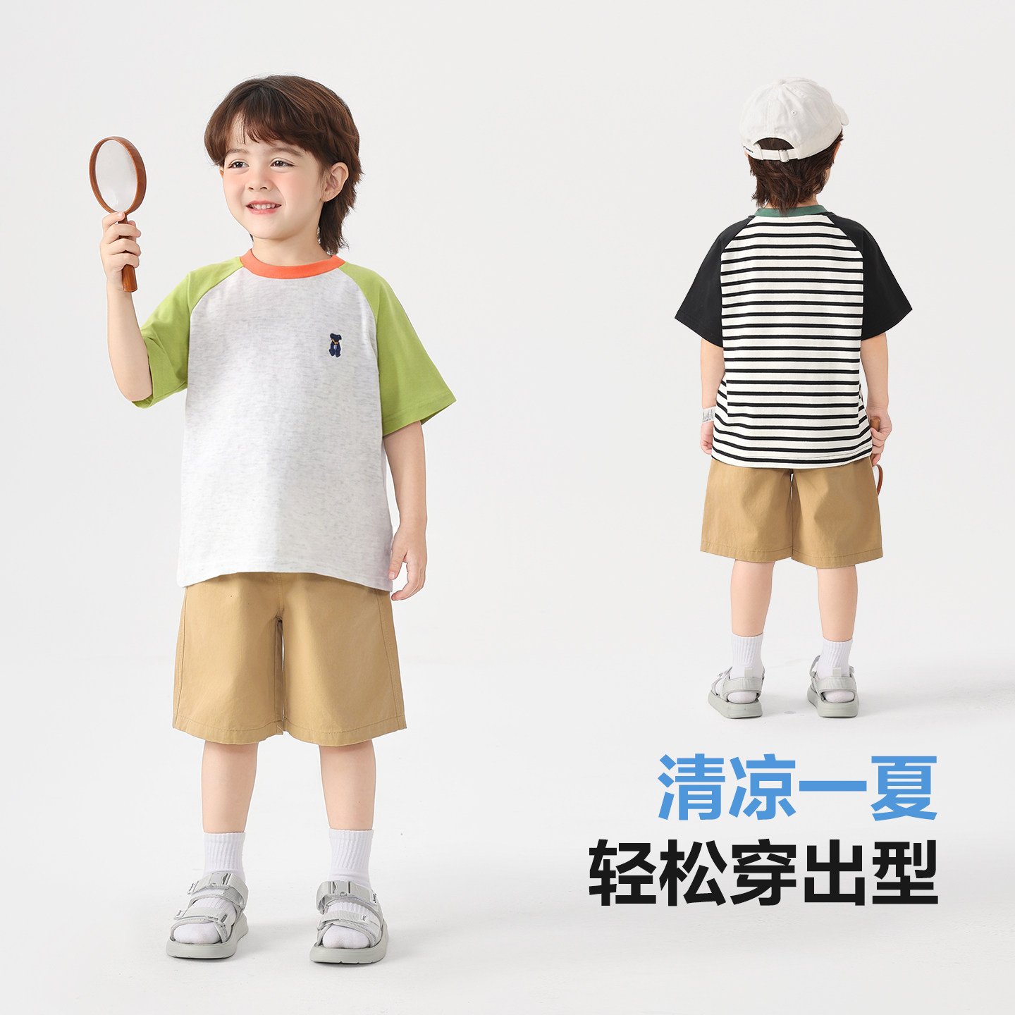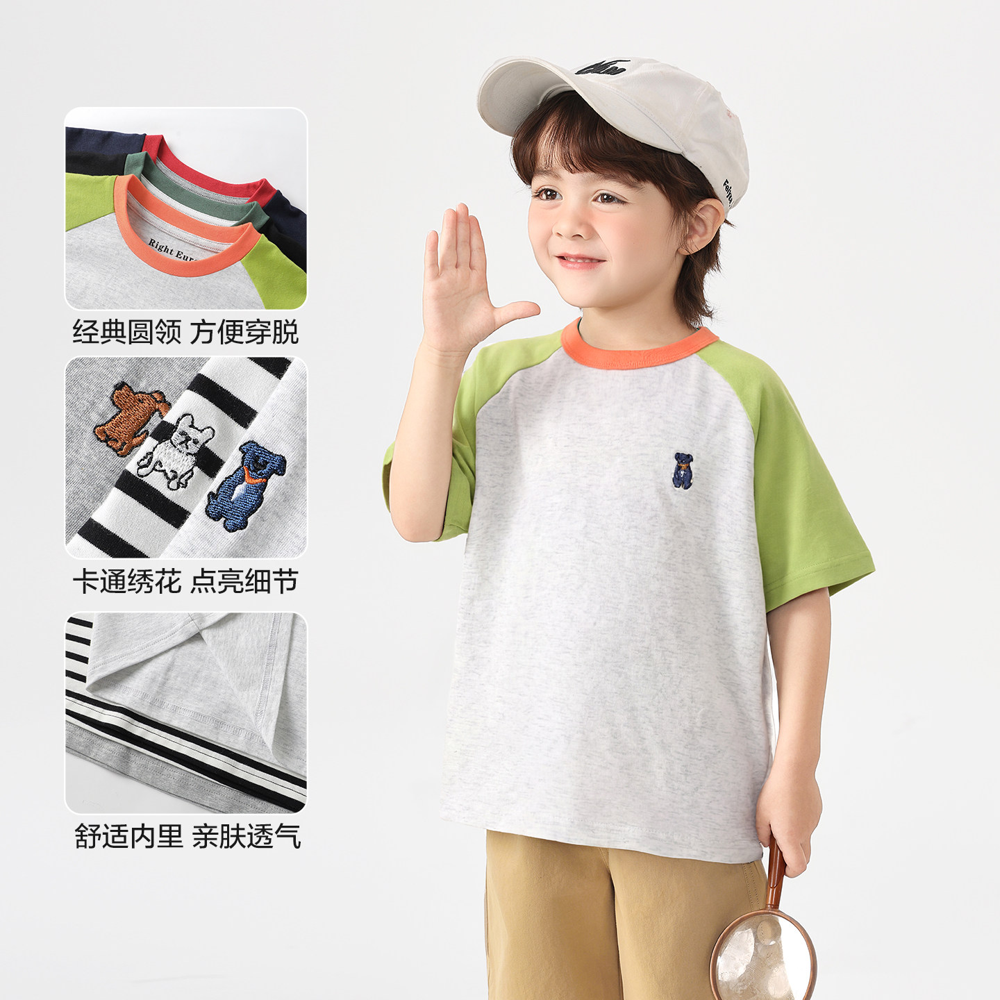 右欧男童女童撞色短袖T恤插肩袖夏季新款童装儿童洋气上衣套头衫