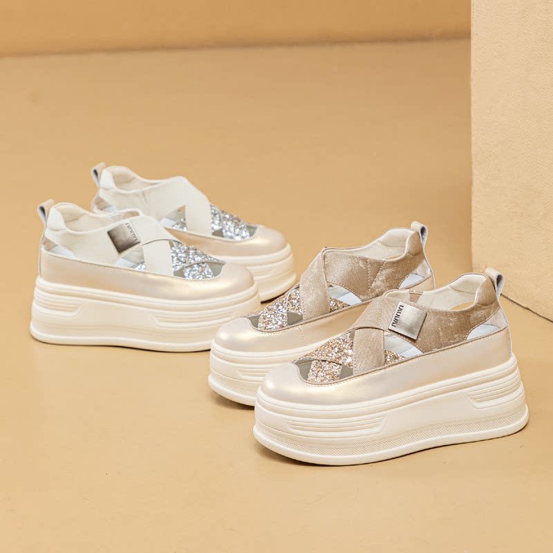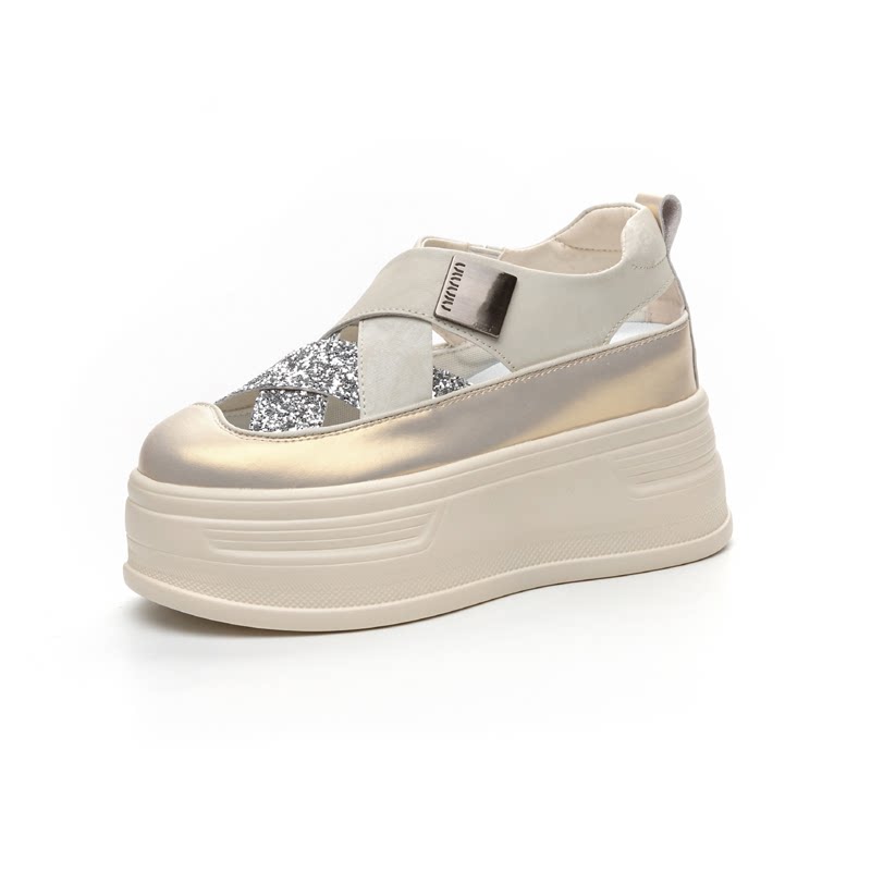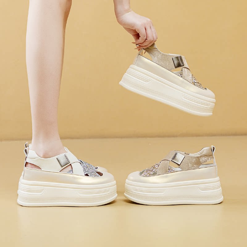 包头凉鞋女2026新款夏季镂空透气真皮小白鞋内增高小个子8cm厚底