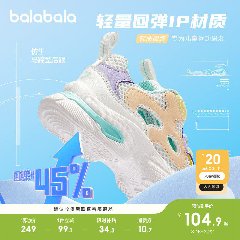 巴拉巴拉童鞋儿童运动鞋旋转扣春秋慢跑鞋潮流新秋男童女童老爹鞋