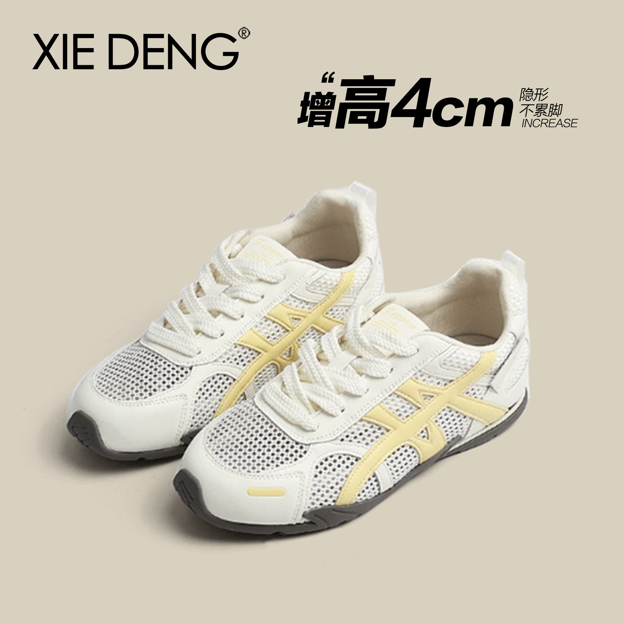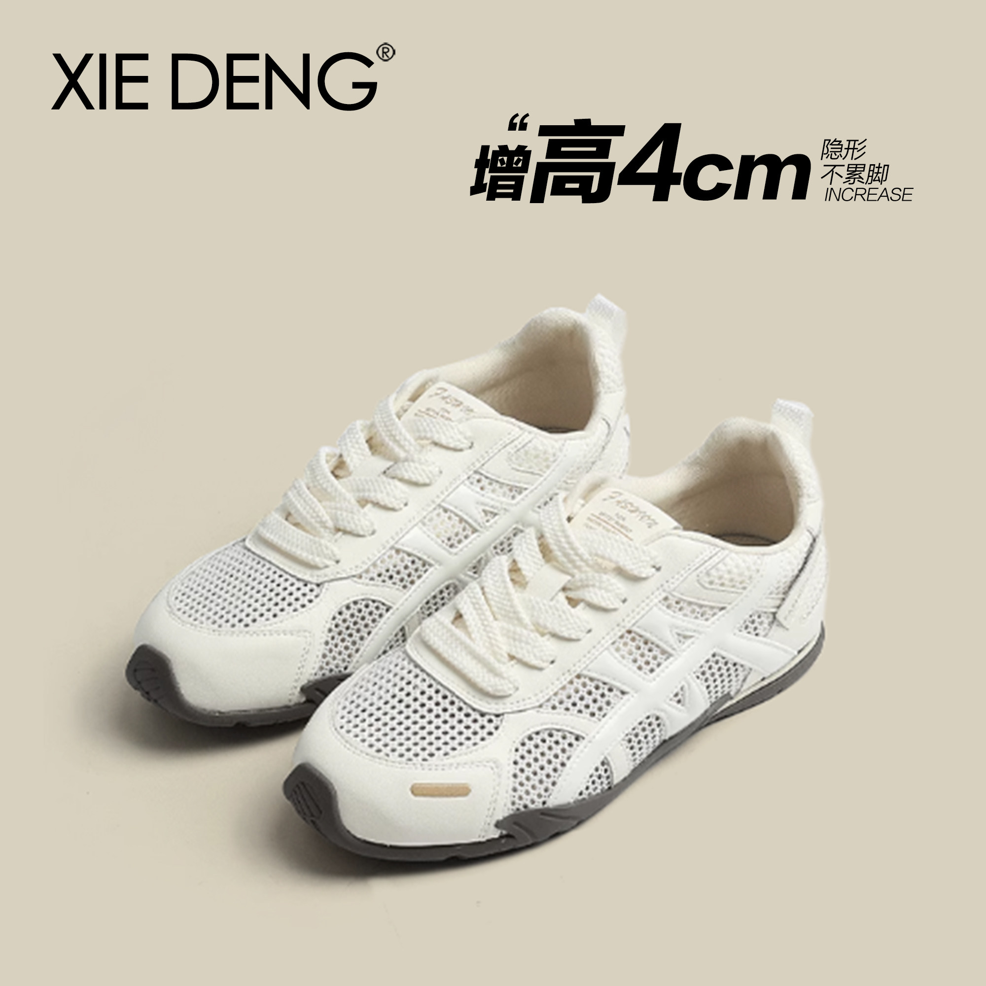 「鞋登」透气网面薄款运动鞋女款2025夏季新款百搭增高阿甘德训鞋
