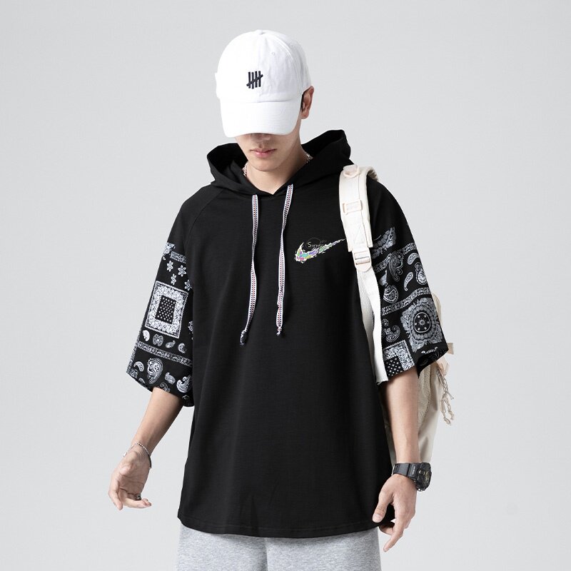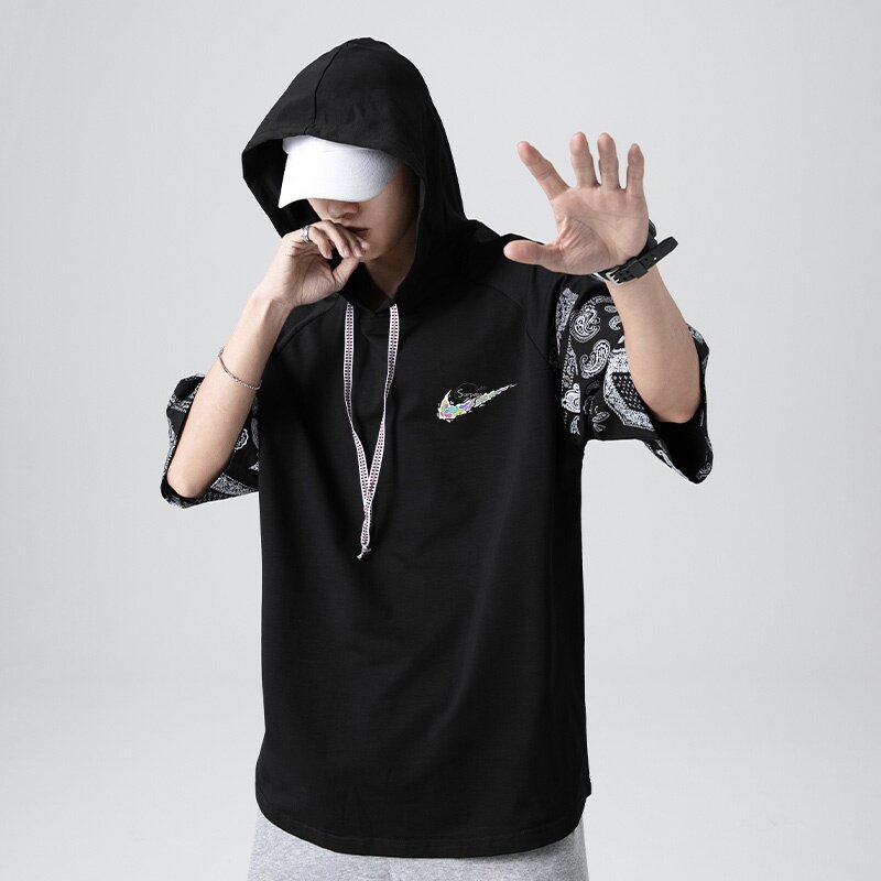 耐克顿夏季男士短袖潮牌连帽帅气宽松透气青少年百搭休闲运动T恤