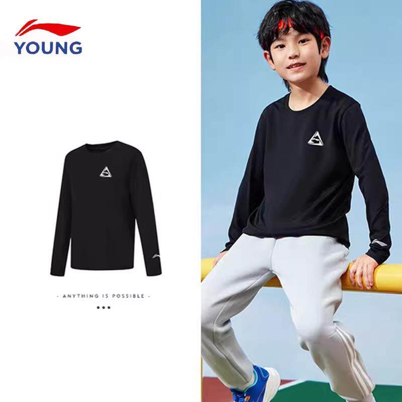 李宁童装儿童运动长袖t恤夏季薄款男童速干跑步T大童投篮上衣长袖