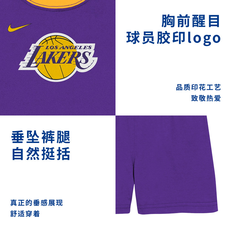 NBA官方Nike中童湖人春季短袖经典潮流T恤套装儿童套装