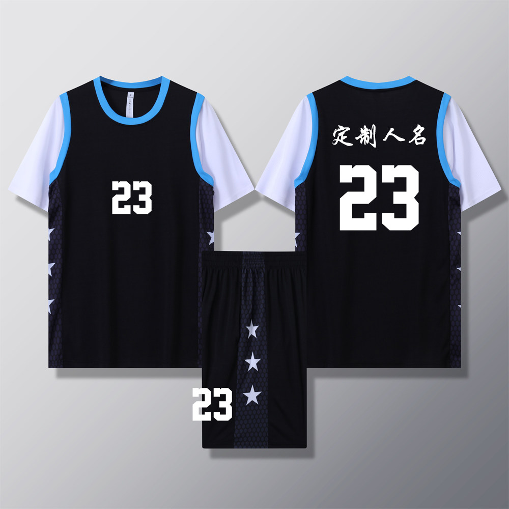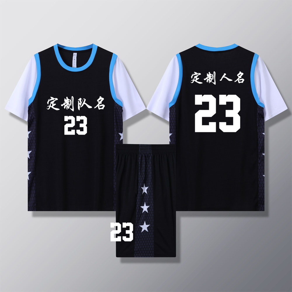 女款女生女童学生假两件短袖篮球服运动健身套装定制印刷B004黑色