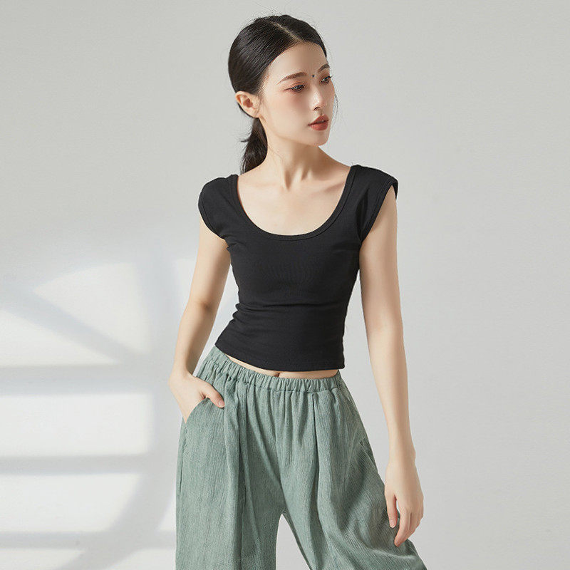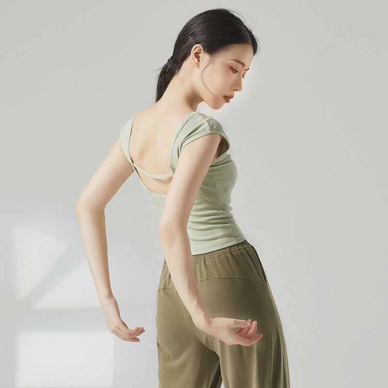 纯棉夏季无袖露背形体服现代舞蹈服装成人练功服上衣女款新款背心