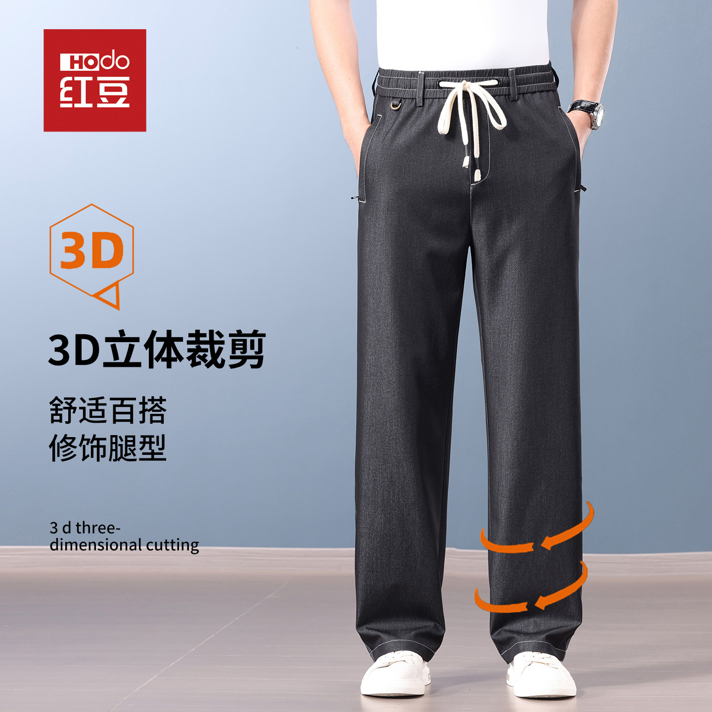 红豆夏季薄款冰丝凉感牛仔裤男士2026新款松紧腰垂感宽松直筒裤子
