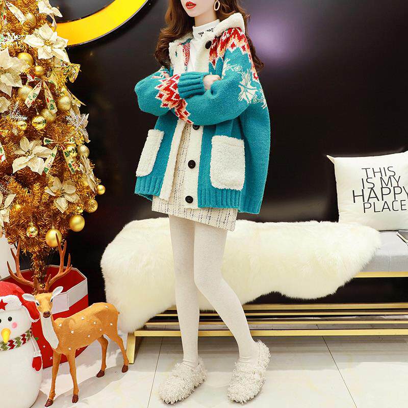 潮牌针织毛衣开衫女宽松外穿加厚秋冬季新款慵懒风拼接高级感外套