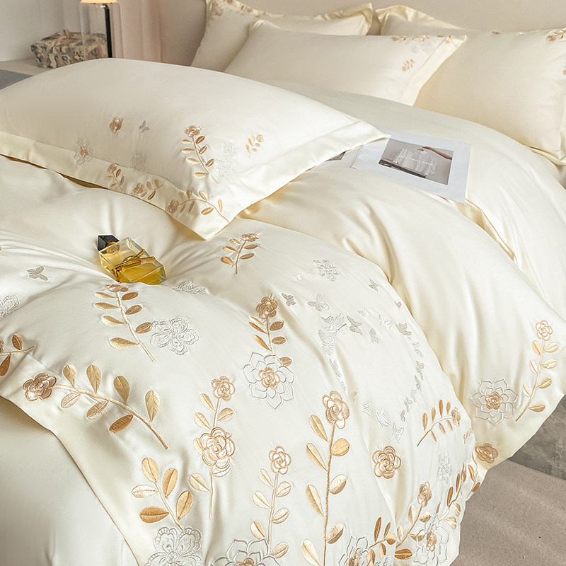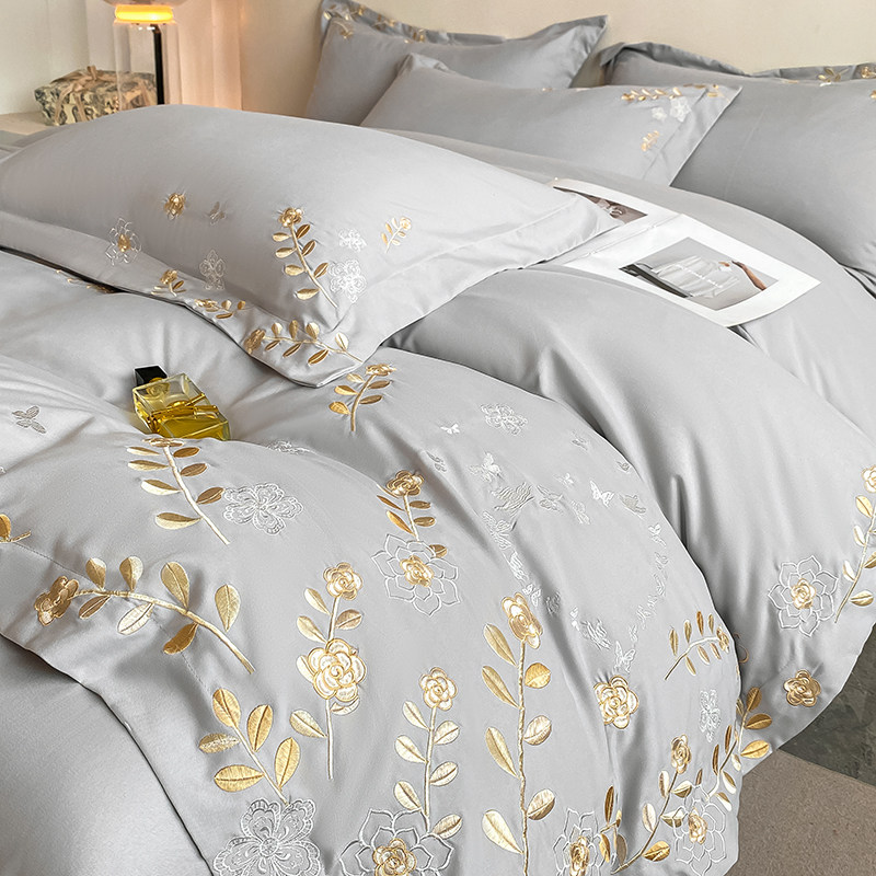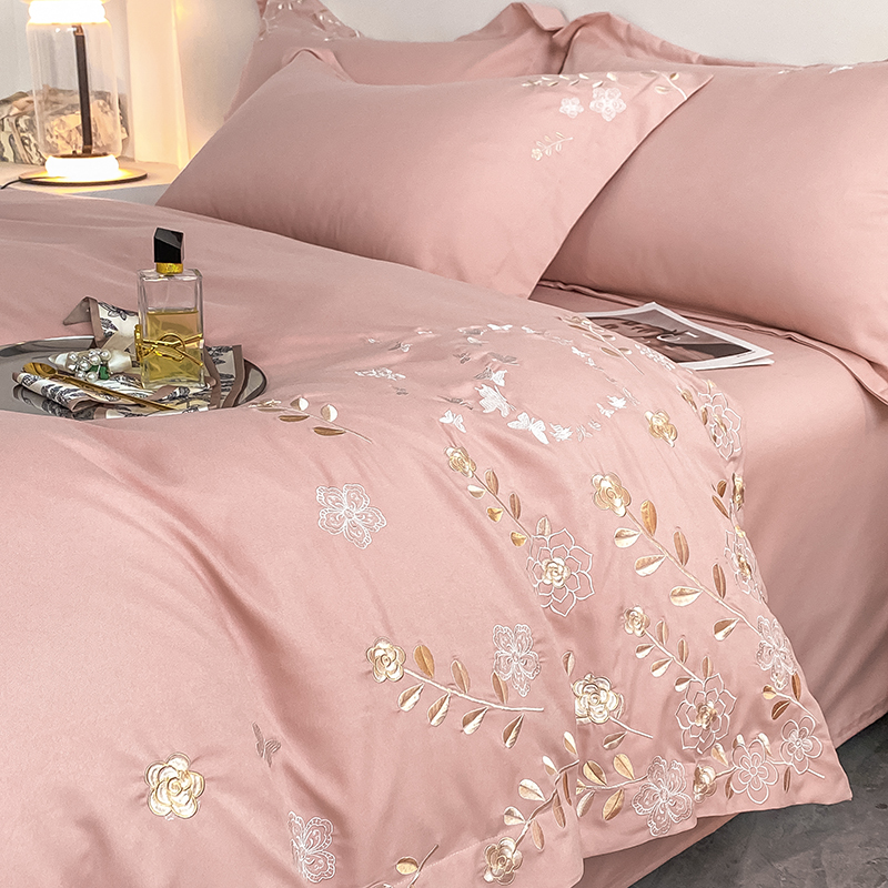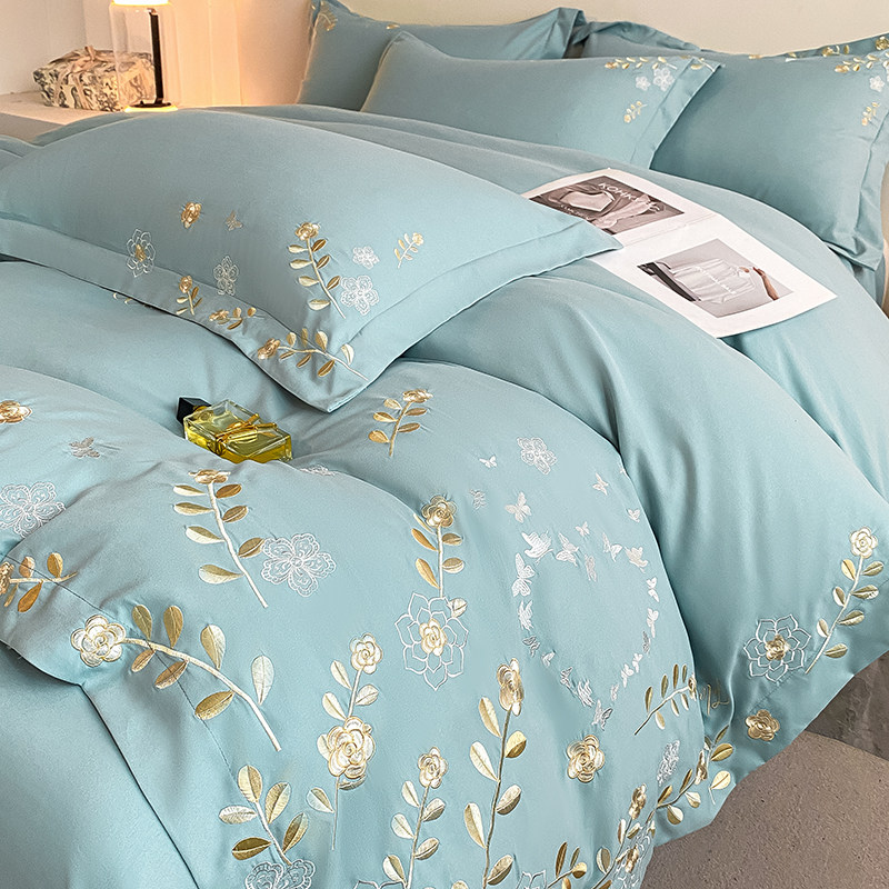 高端轻奢A类纯棉四件套花卉刺绣被套罩床笠柔软裸睡卧室床上用品4