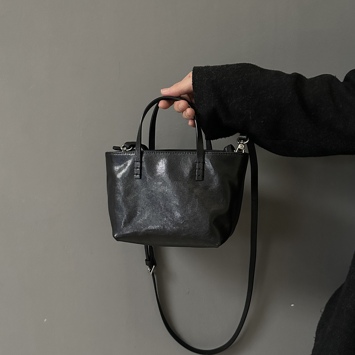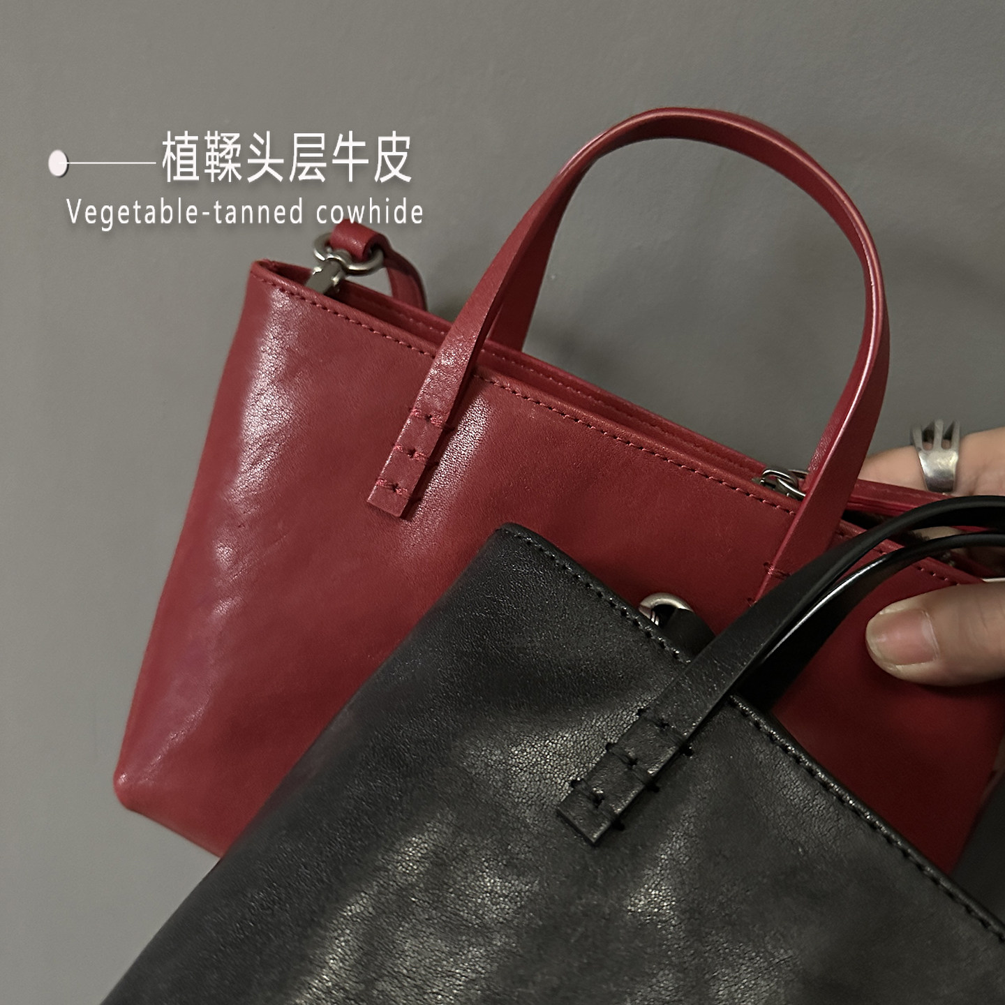 水晶头层植鞣全牛皮女士小包菜篮子包简约休闲真皮包手提斜挎包潮