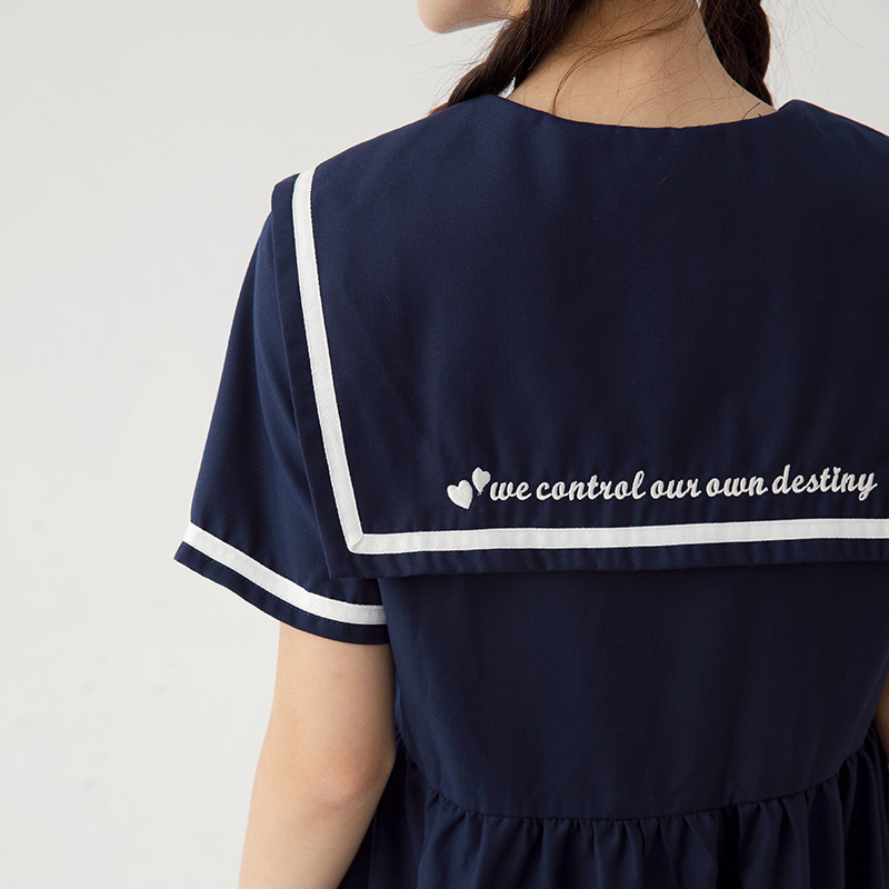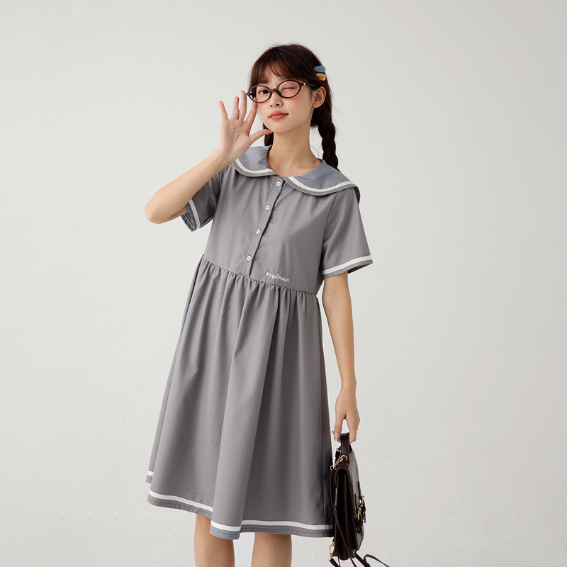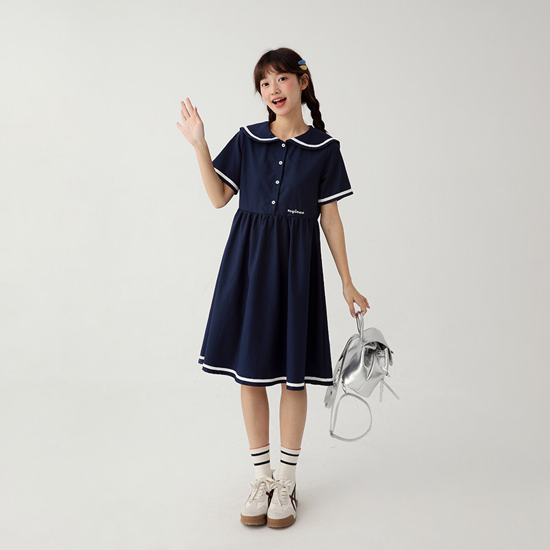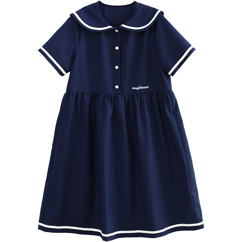 诺诺公主S1N 大童中长款连衣裙高中初中生学生短袖款海军风裙子女