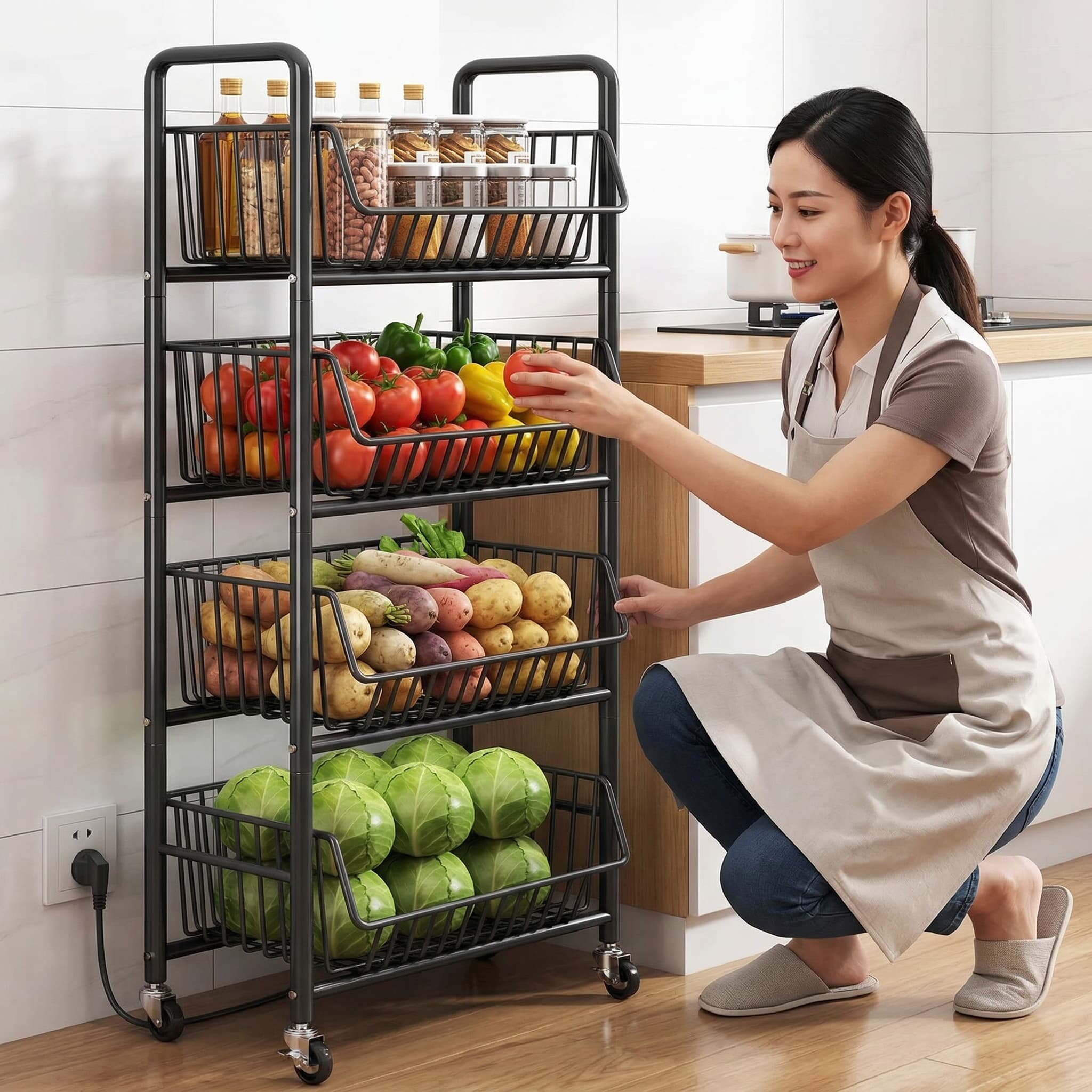 厨房蔬菜置物架落地多层菜篮收纳架新款多功能省空间可移动小推车