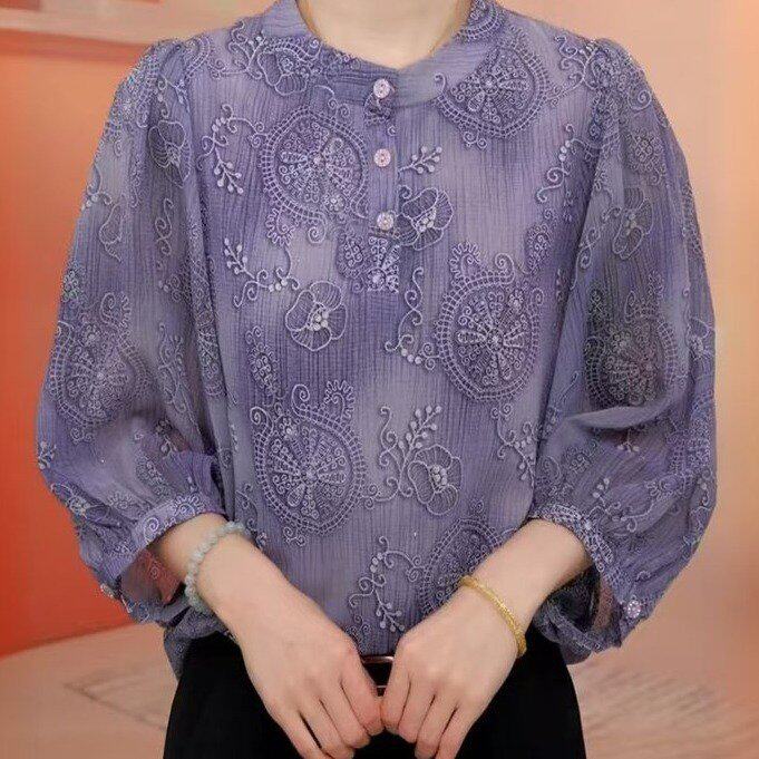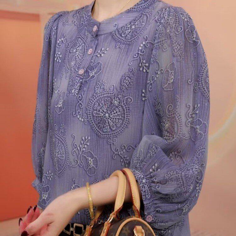 纱袖女款打底衫女薄款2026春季新款宽松洋气百搭内搭妈妈T恤上衣