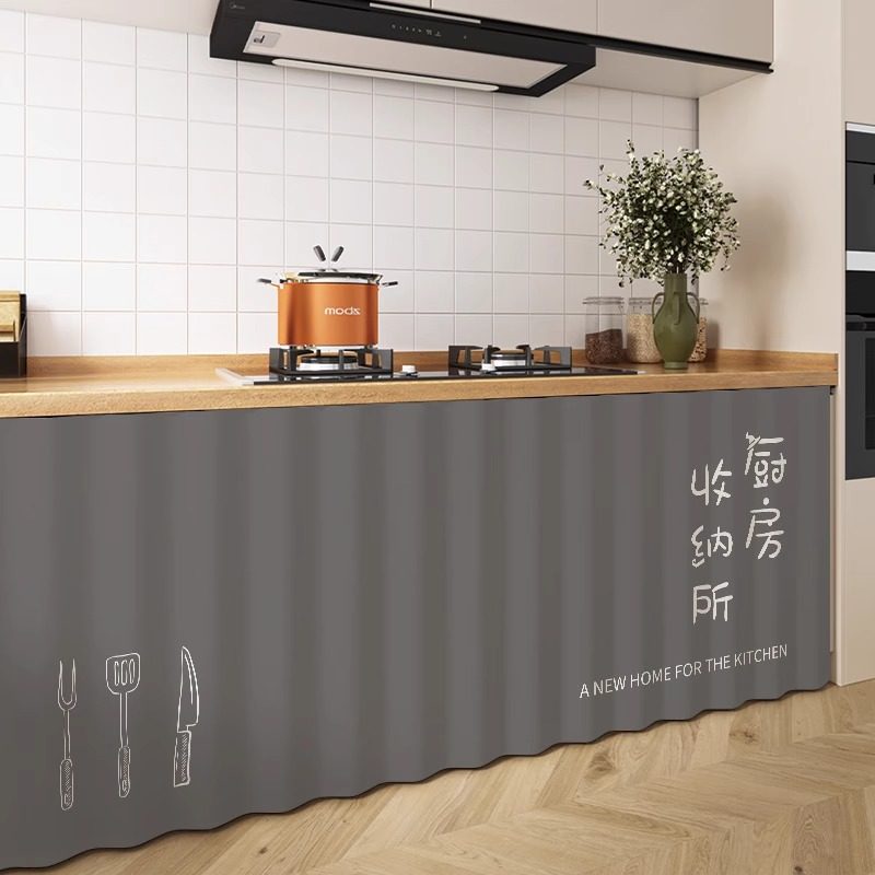 厨房柜子遮挡帘橱柜置物架杂物防尘遮丑帘免打孔魔术贴滑轨式拉帘