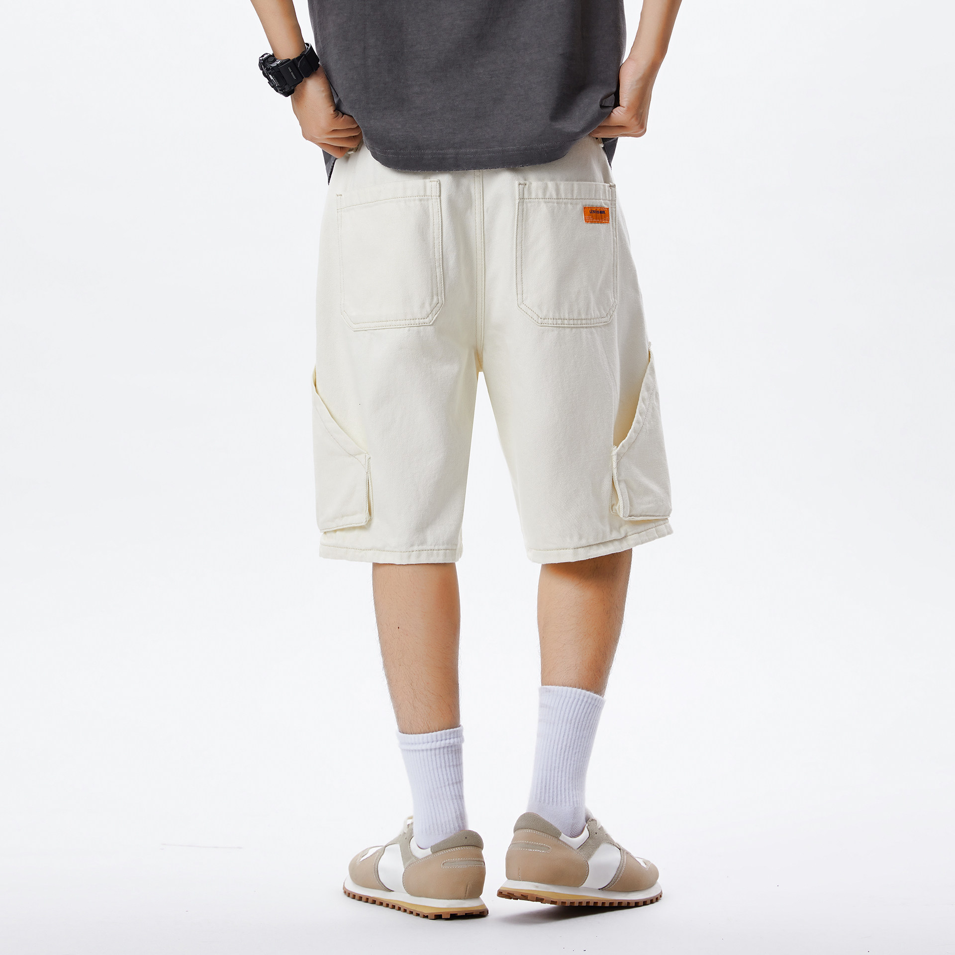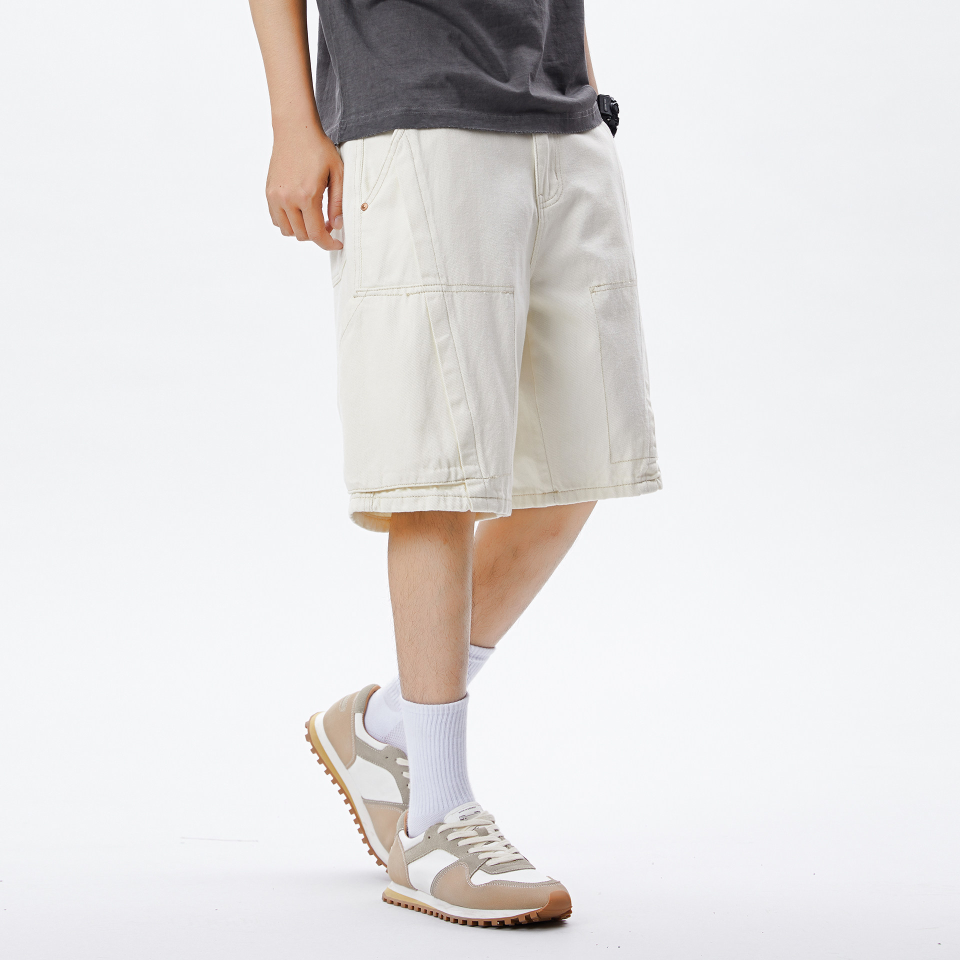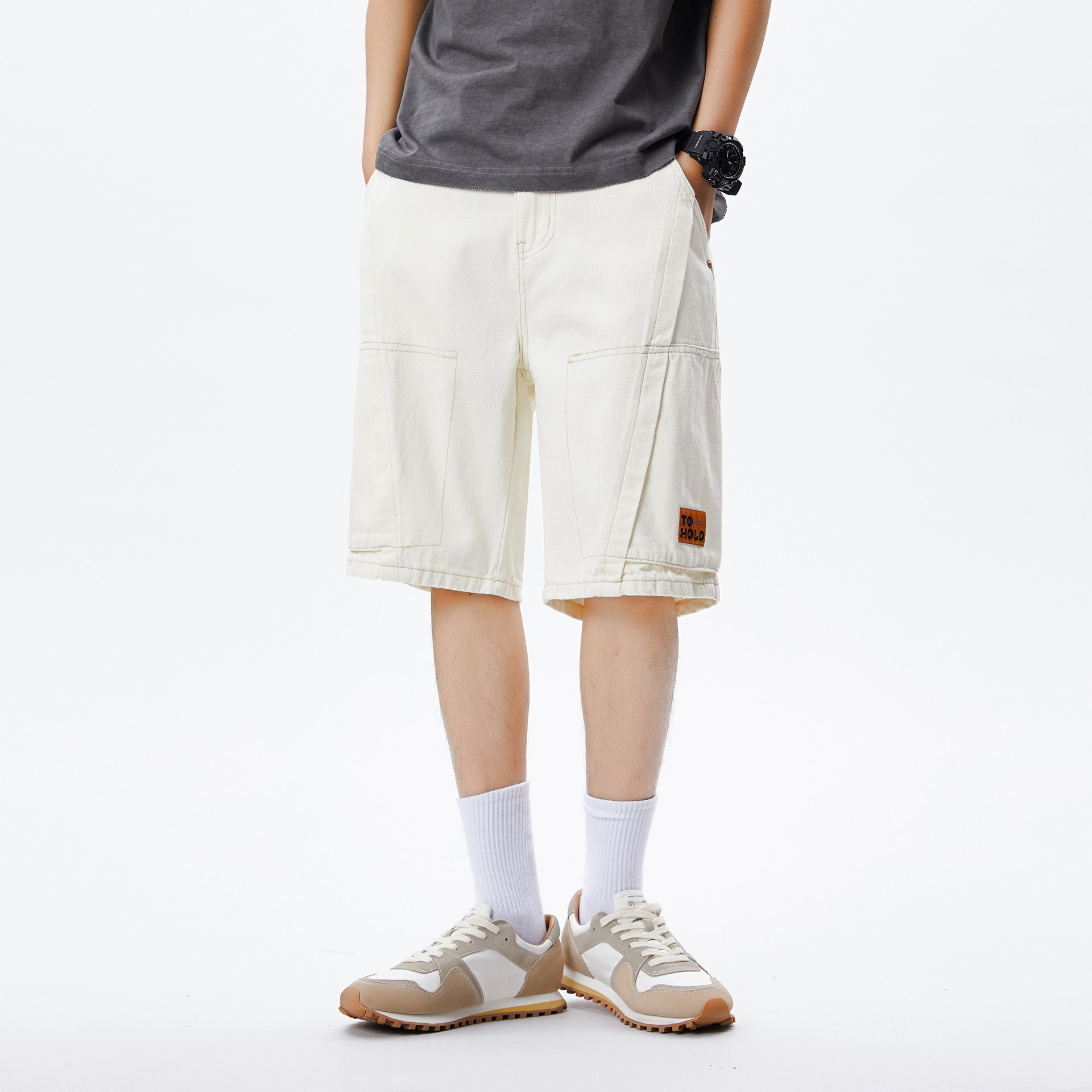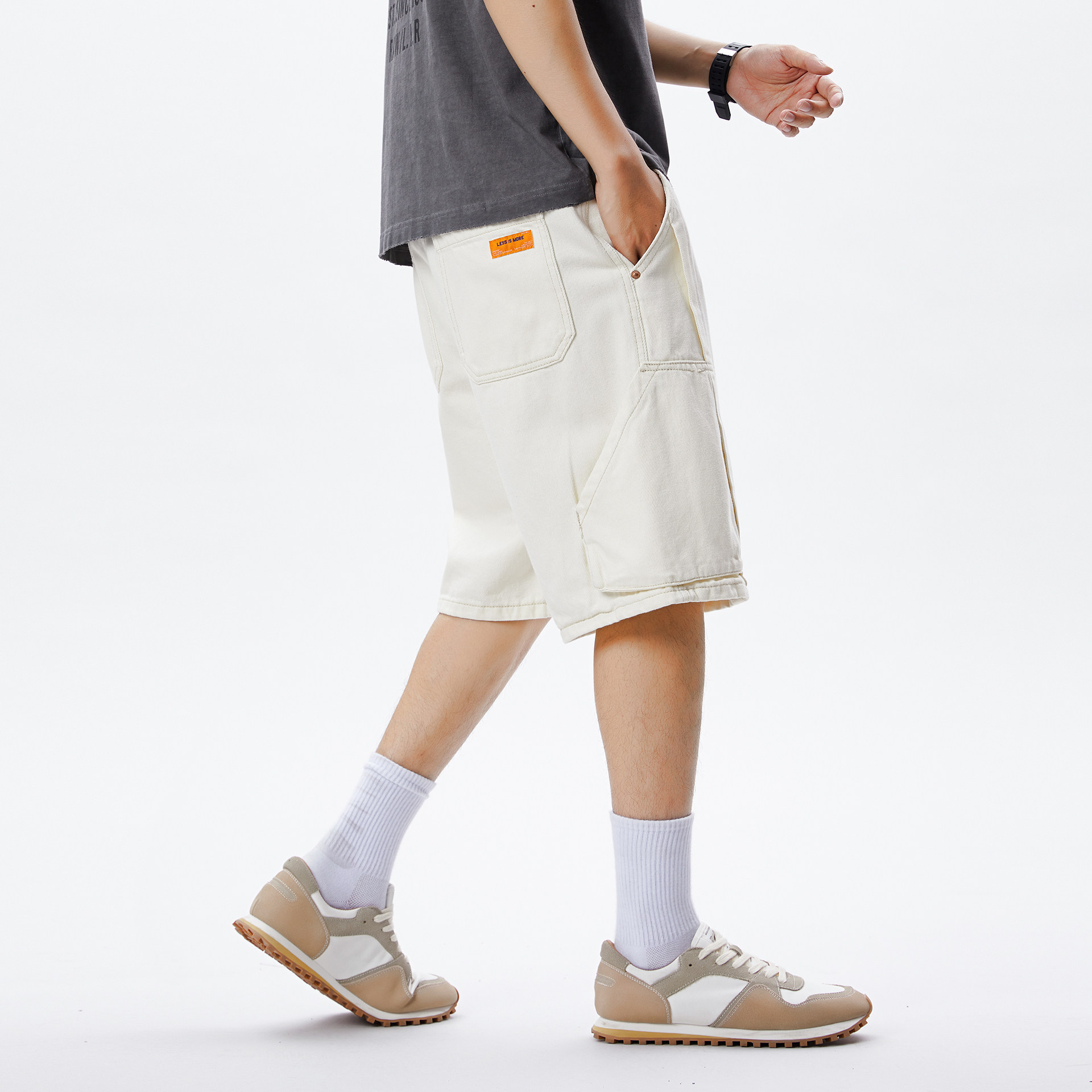 JFU夏季白色纯棉宽松休闲牛仔短裤男款潮流百搭薄款直筒五分中裤