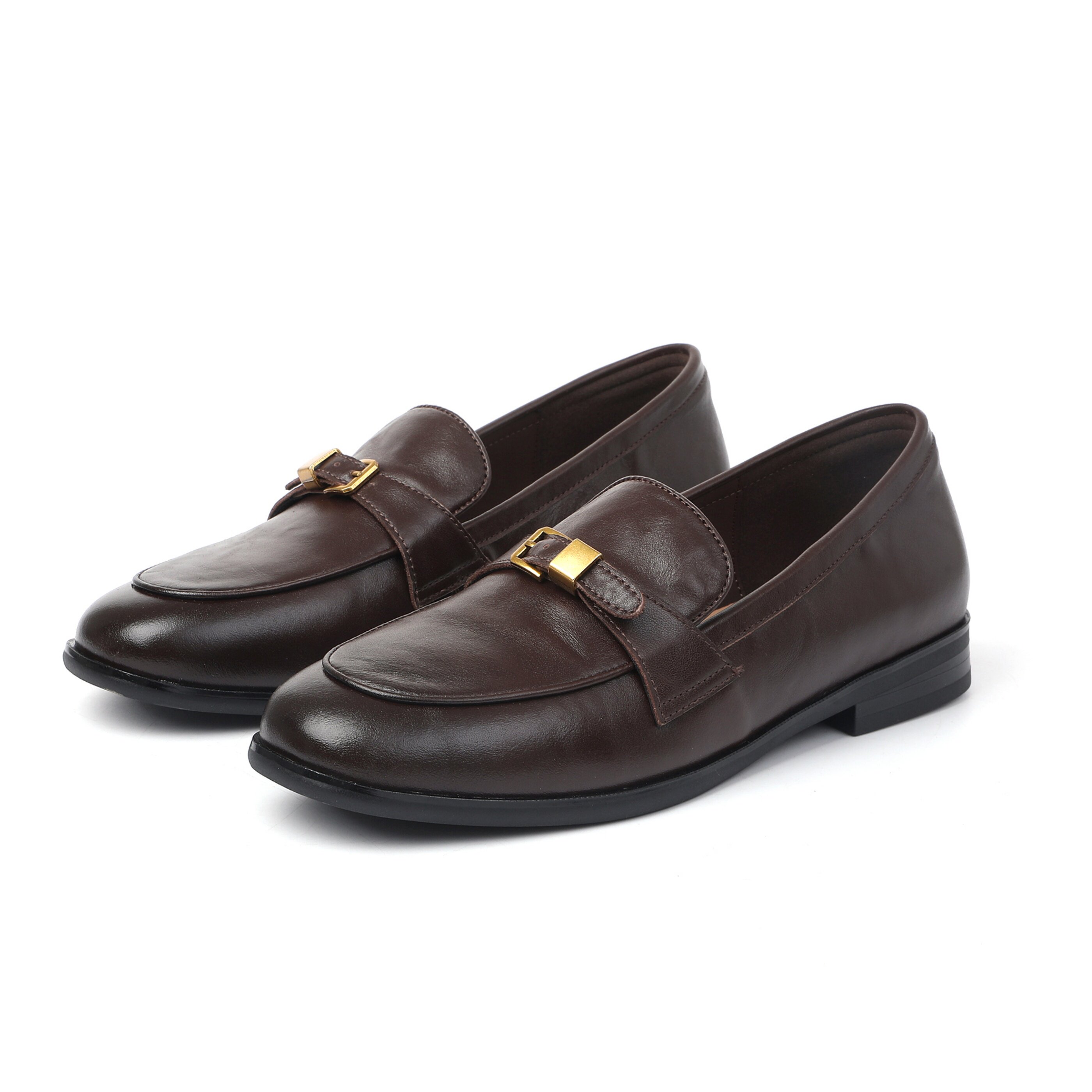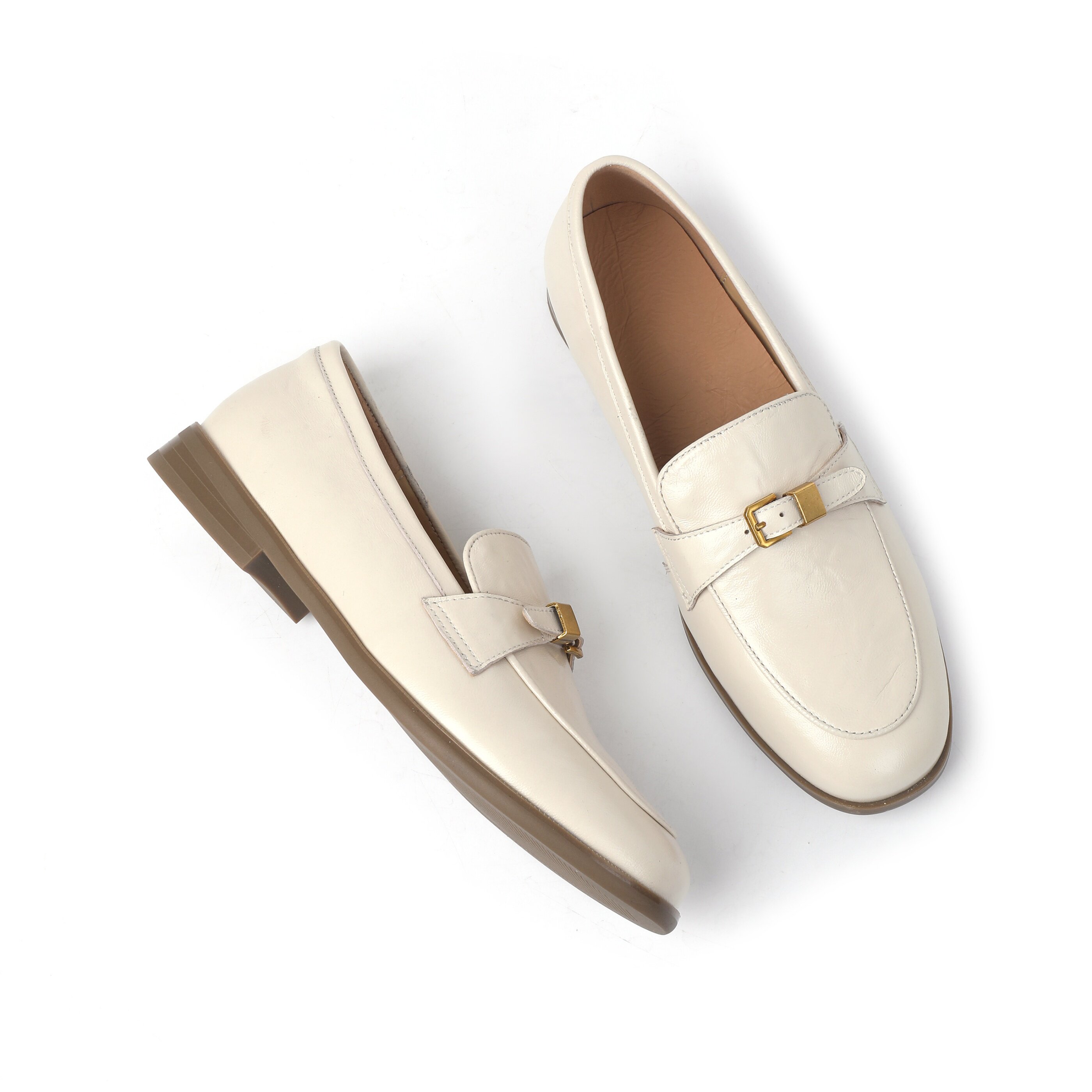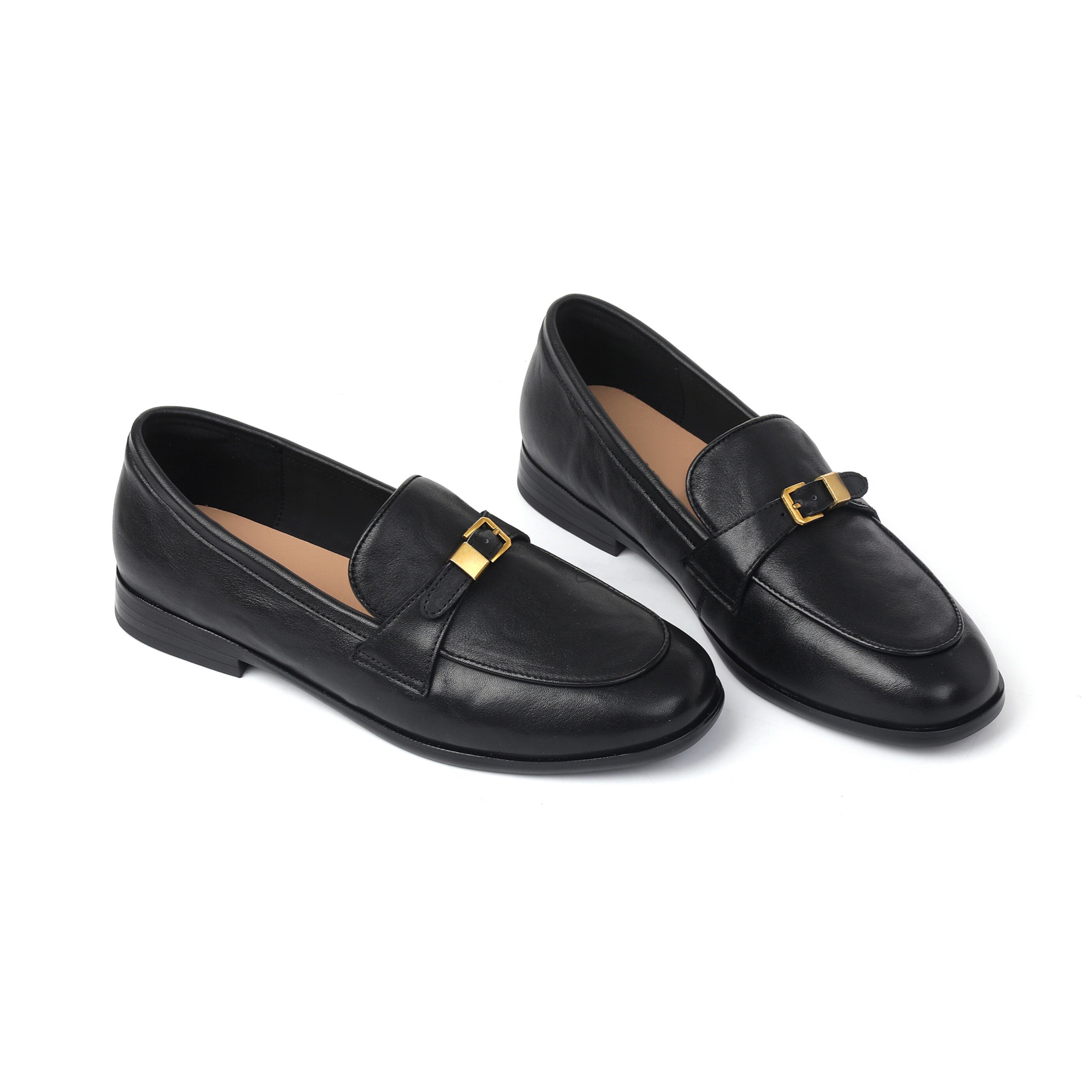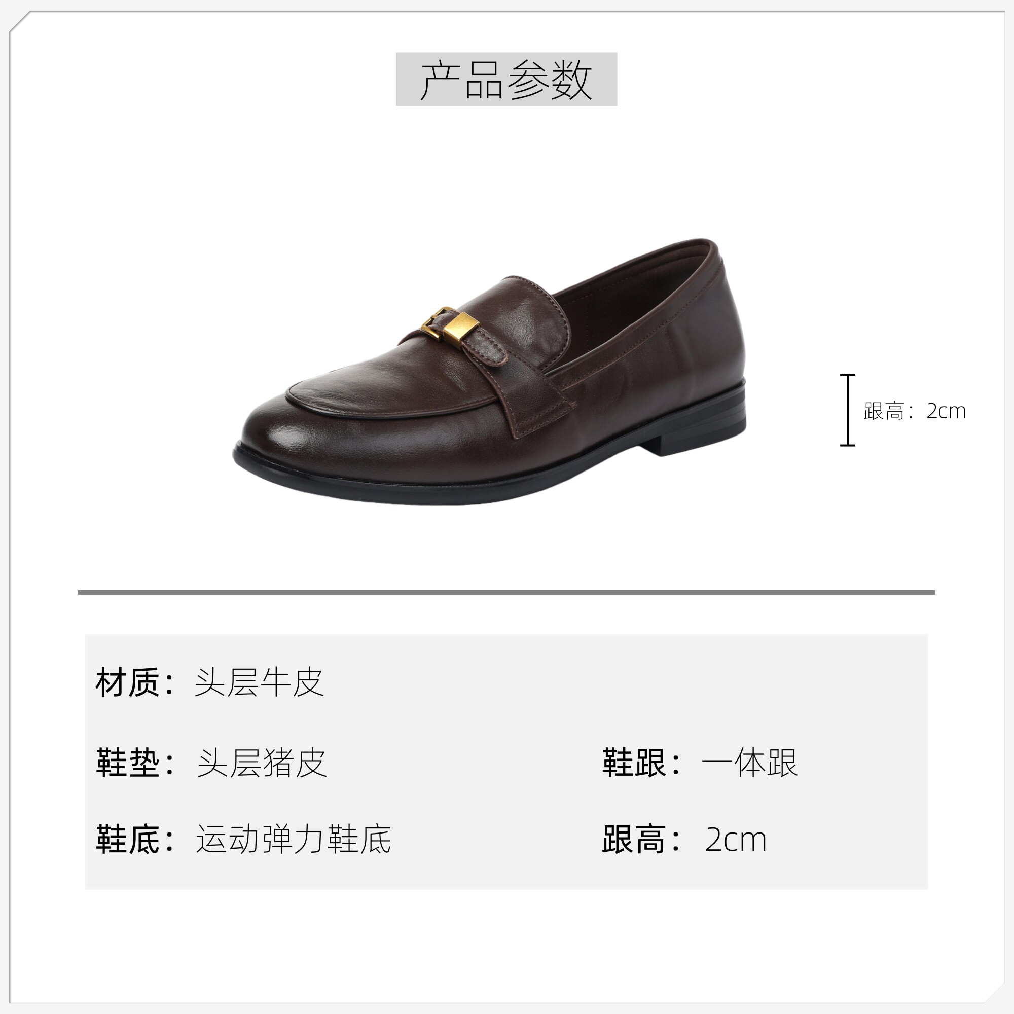 头层牛皮英伦风真皮乐福鞋女金属扣一脚蹬百搭通勤小皮鞋平底单鞋