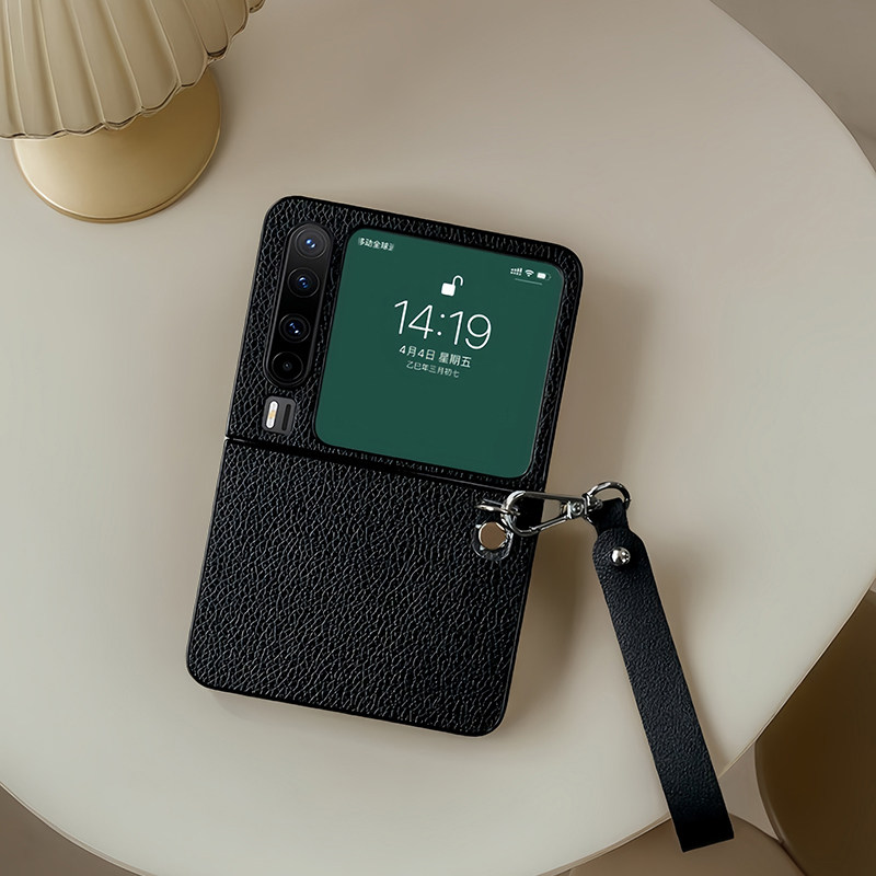 适用华为purax手机壳简约女男款高级皮质黑色轻薄时尚pura x艺术定制版新形态折叠屏手提挂绳链条防摔保护套