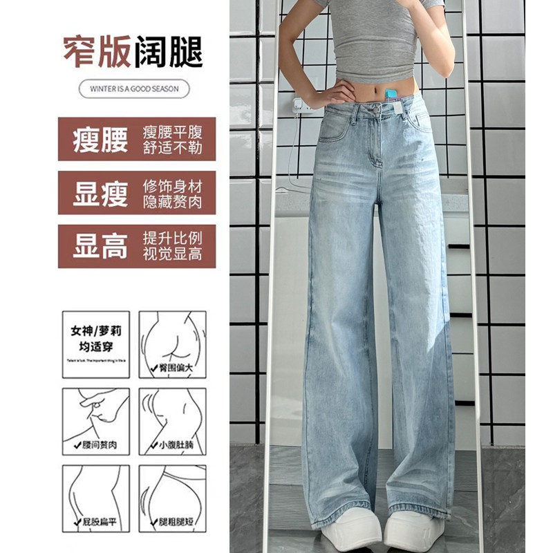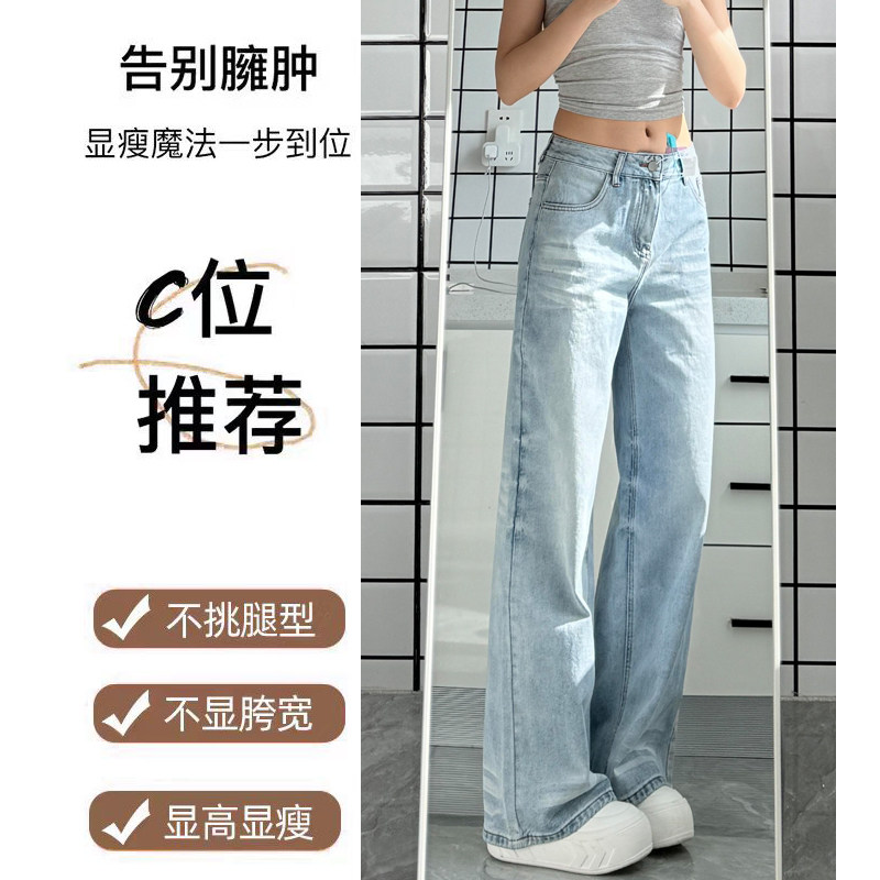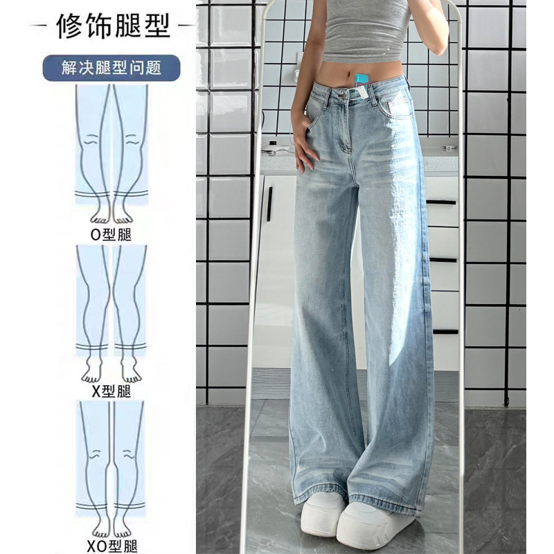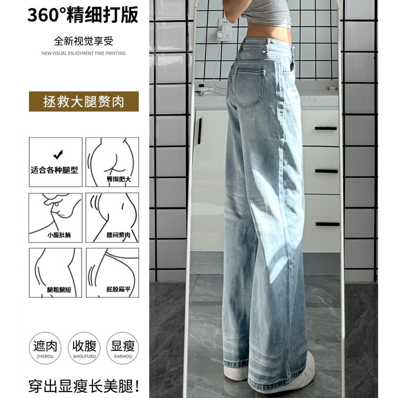 浅蓝色复古水洗阔腿牛仔裤女2026春季新款高腰显瘦宽松垂感直筒裤