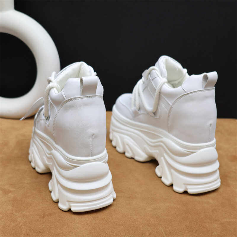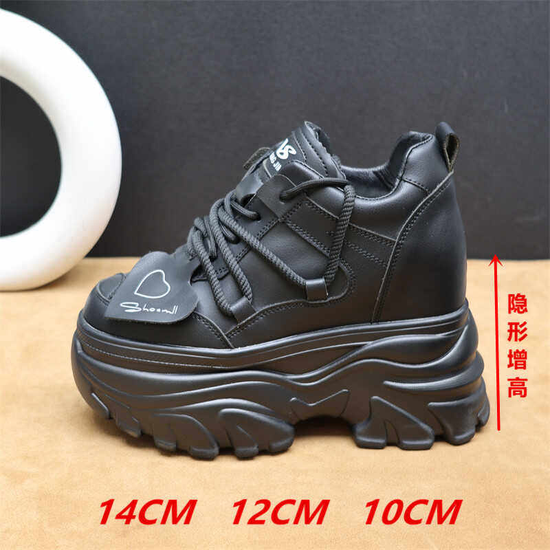 14cm内增高女鞋2025秋冬新款真皮厚底松糕小个子休闲小白老爹鞋子