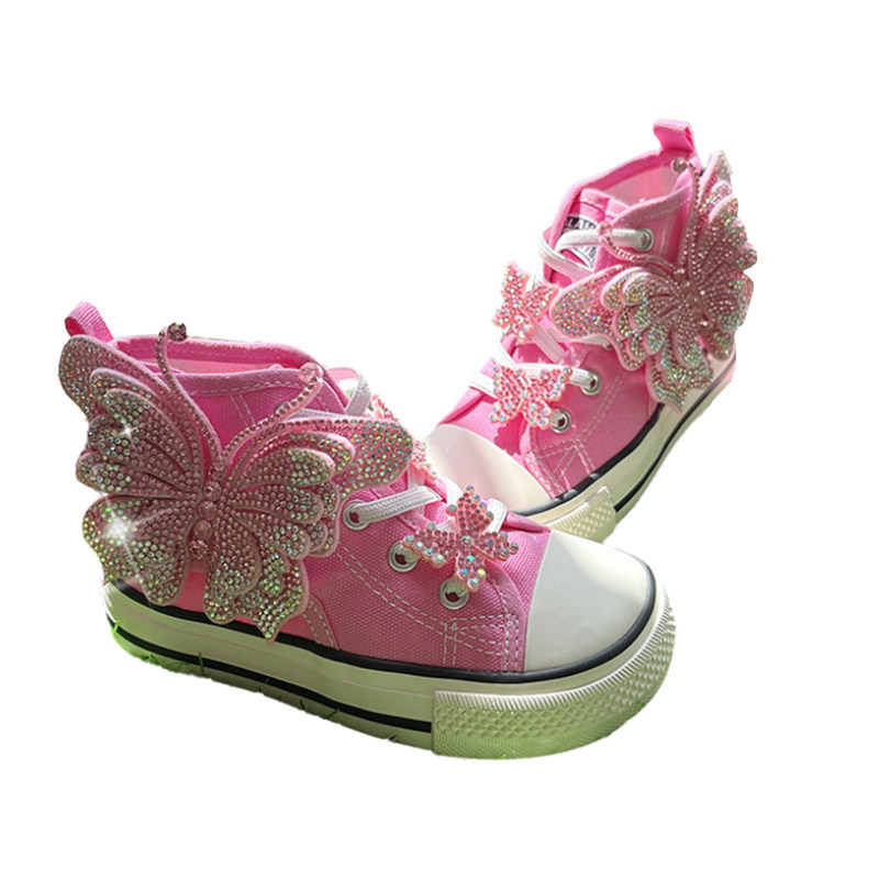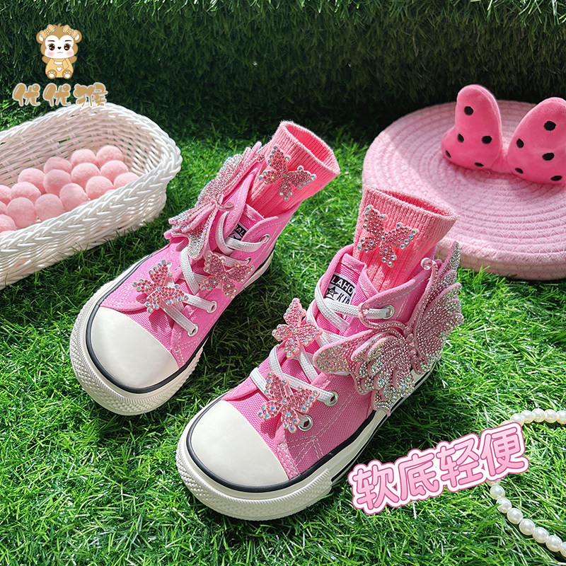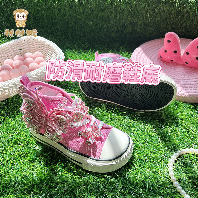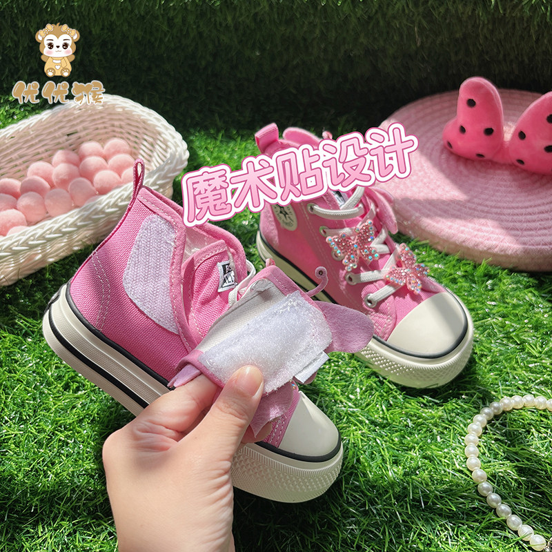 女童粉色高帮帆布鞋2026新款中大童儿童软底不累脚魔术贴鞋子板鞋