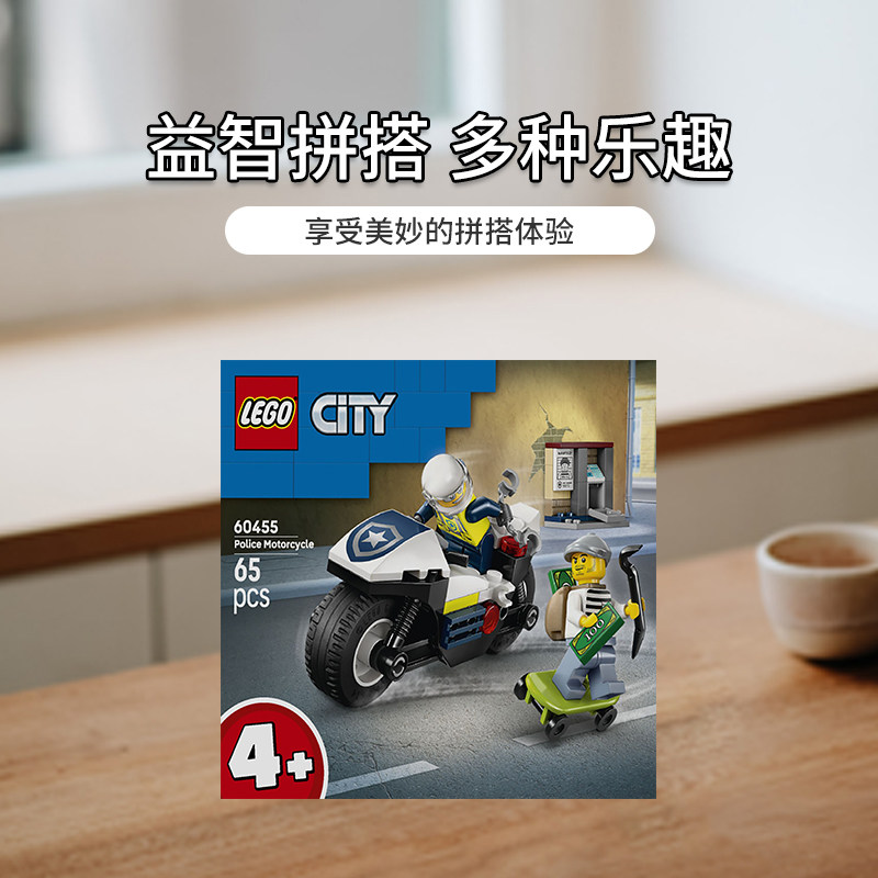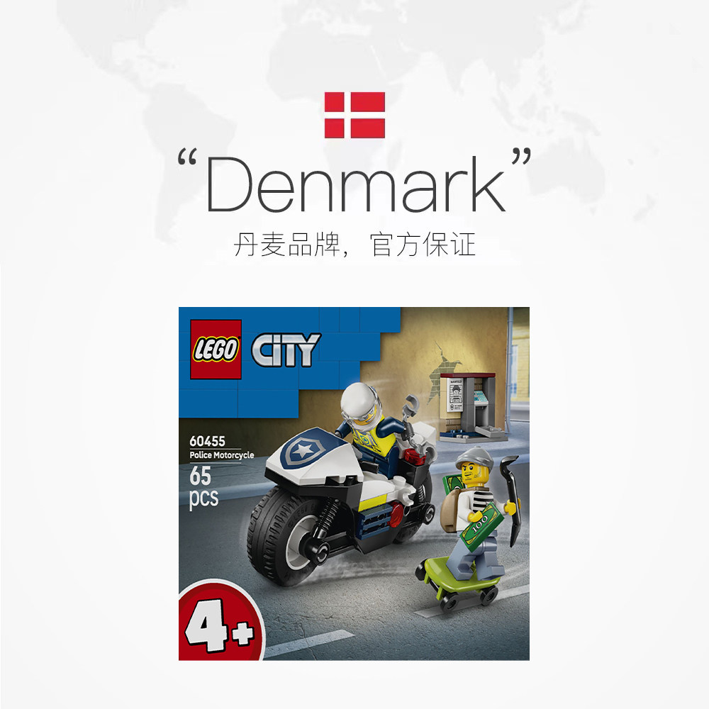 【自营】乐高城市组60455警用摩托车大追击男生拼搭积木玩具礼物