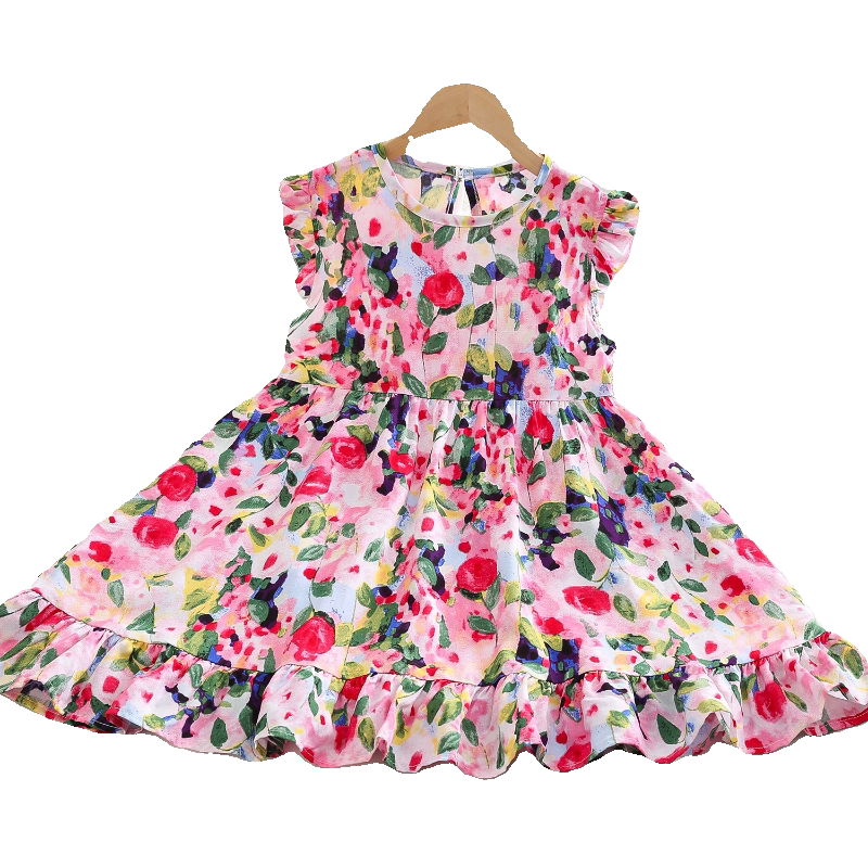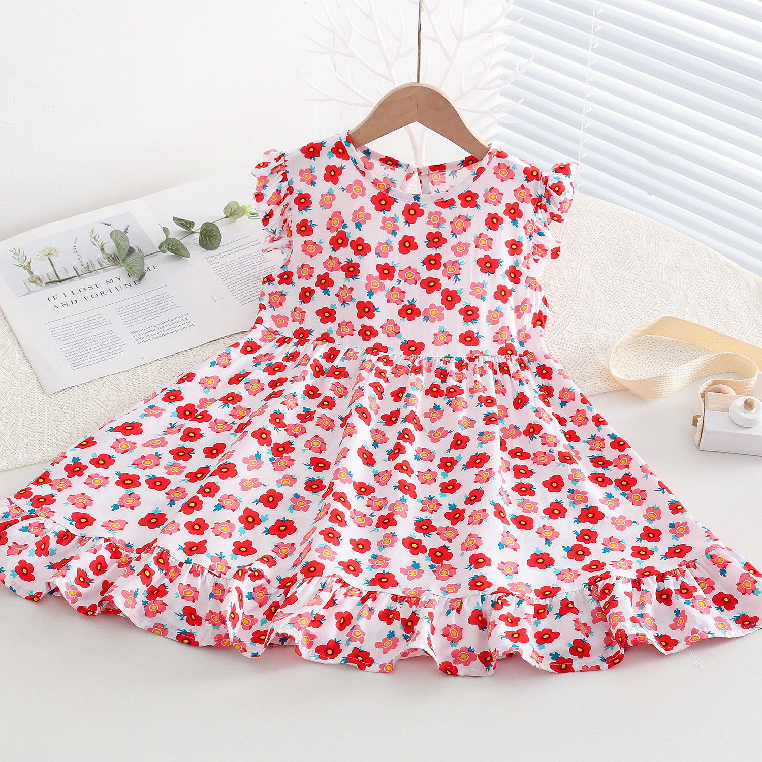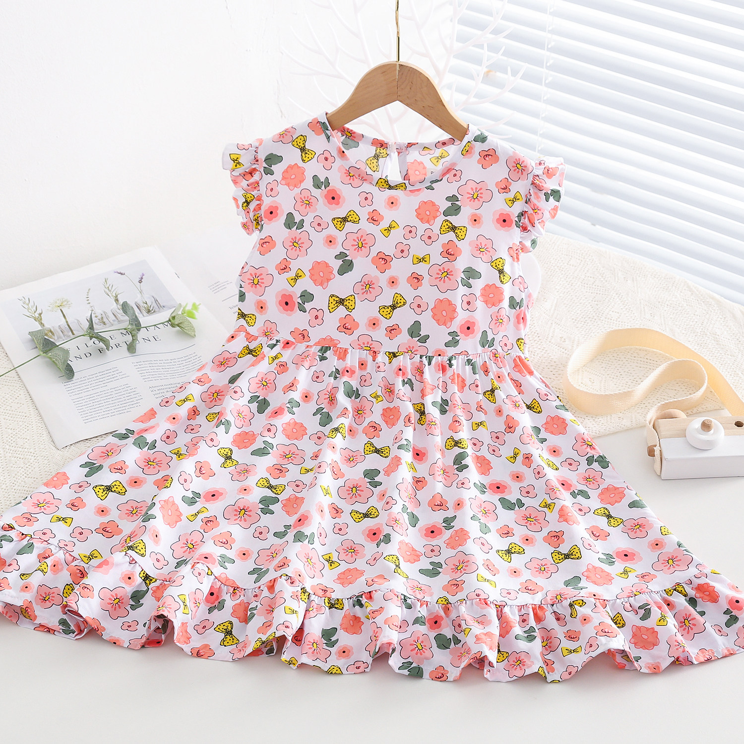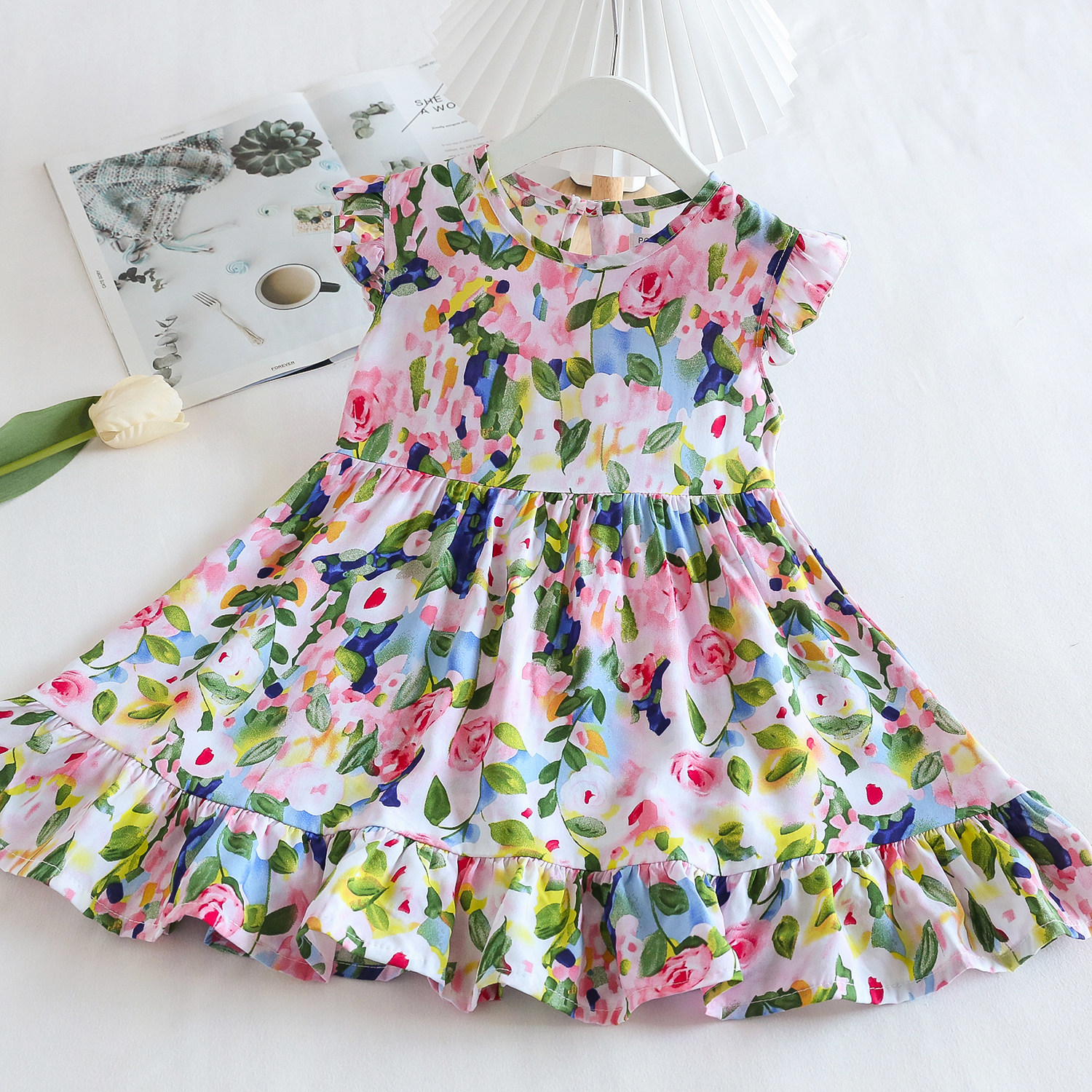 清新凉爽~女童飞袖棉绸裙子夏薄款儿童宝宝凉快人造棉碎花连衣裙