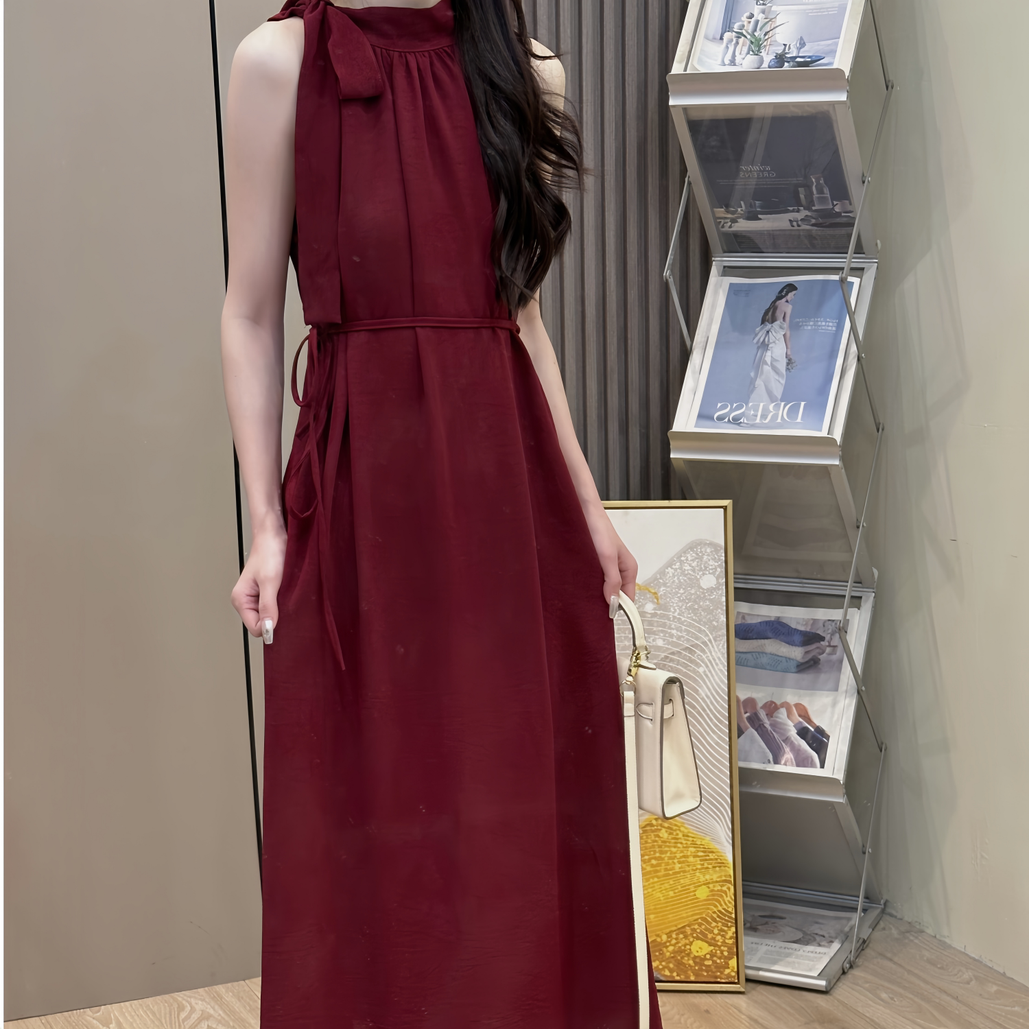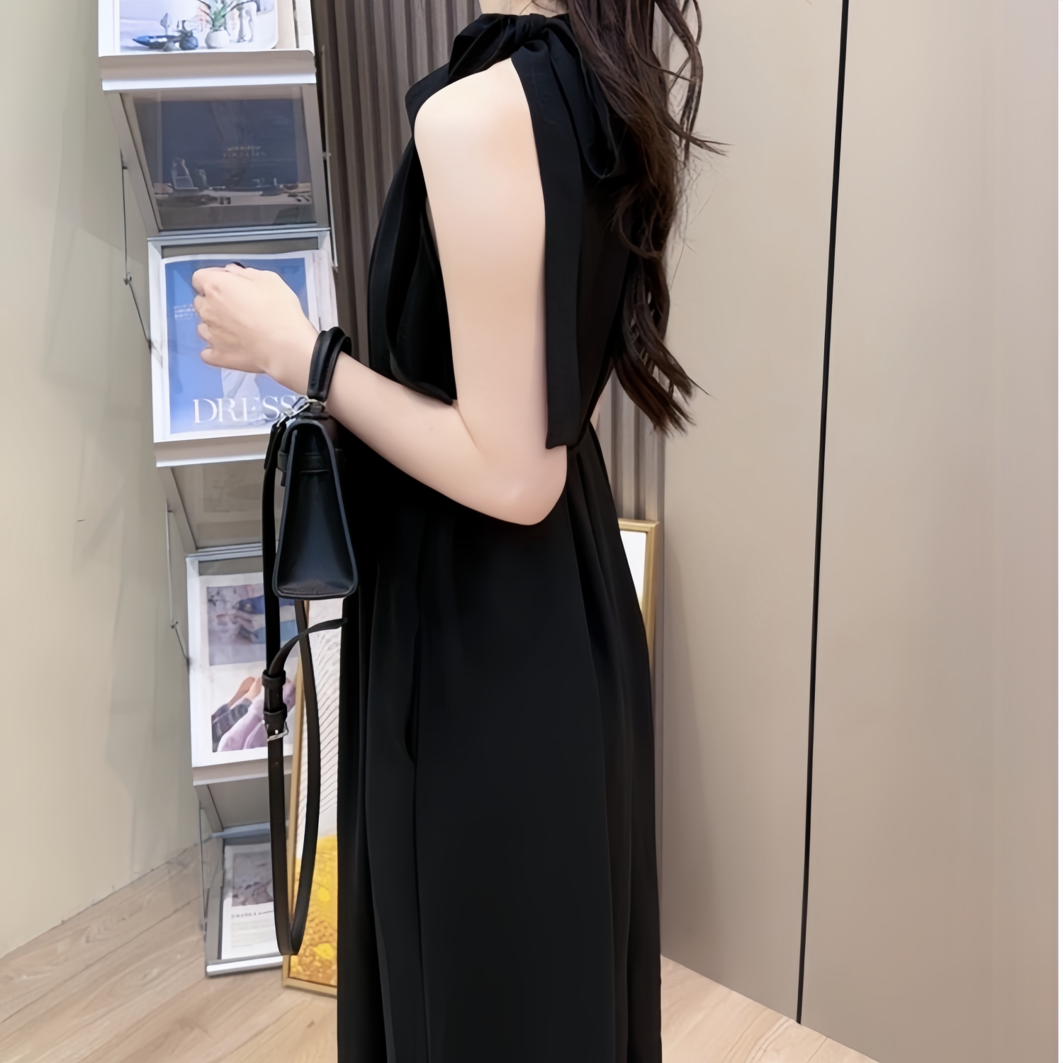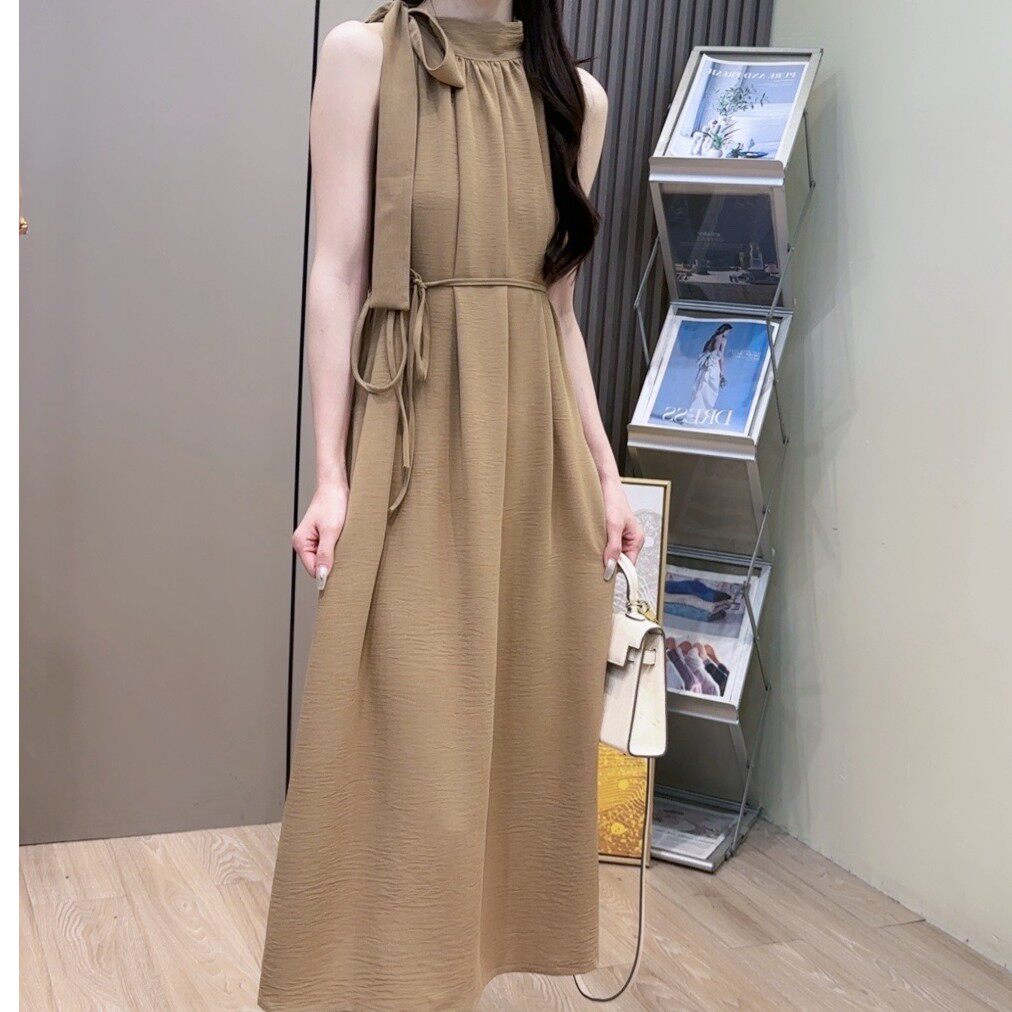 法式夏季名媛挂脖连衣裙露肩绑带宽松显瘦度假风无袖垂感气质裙子