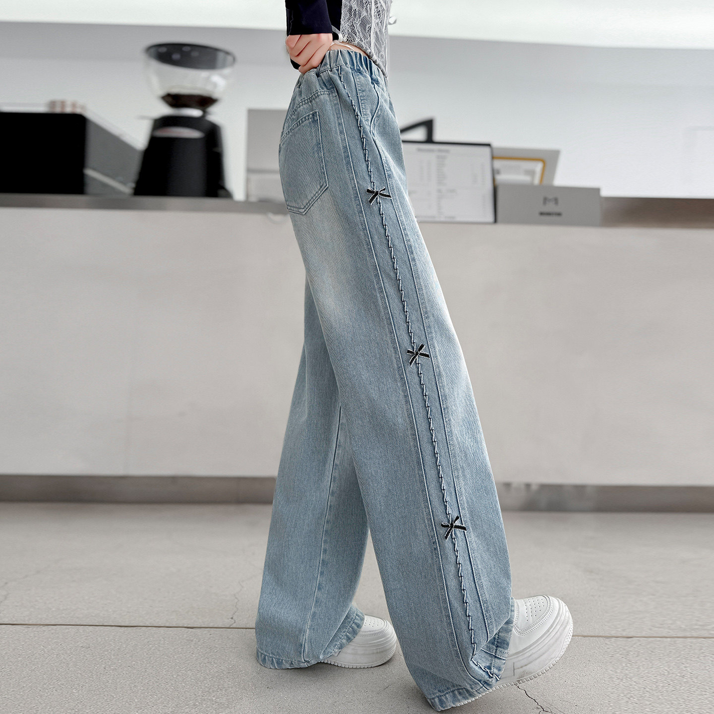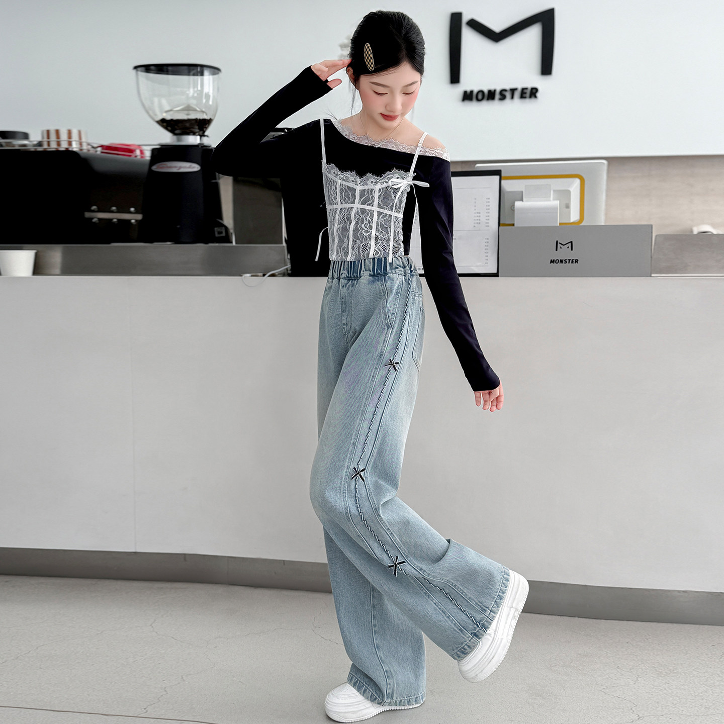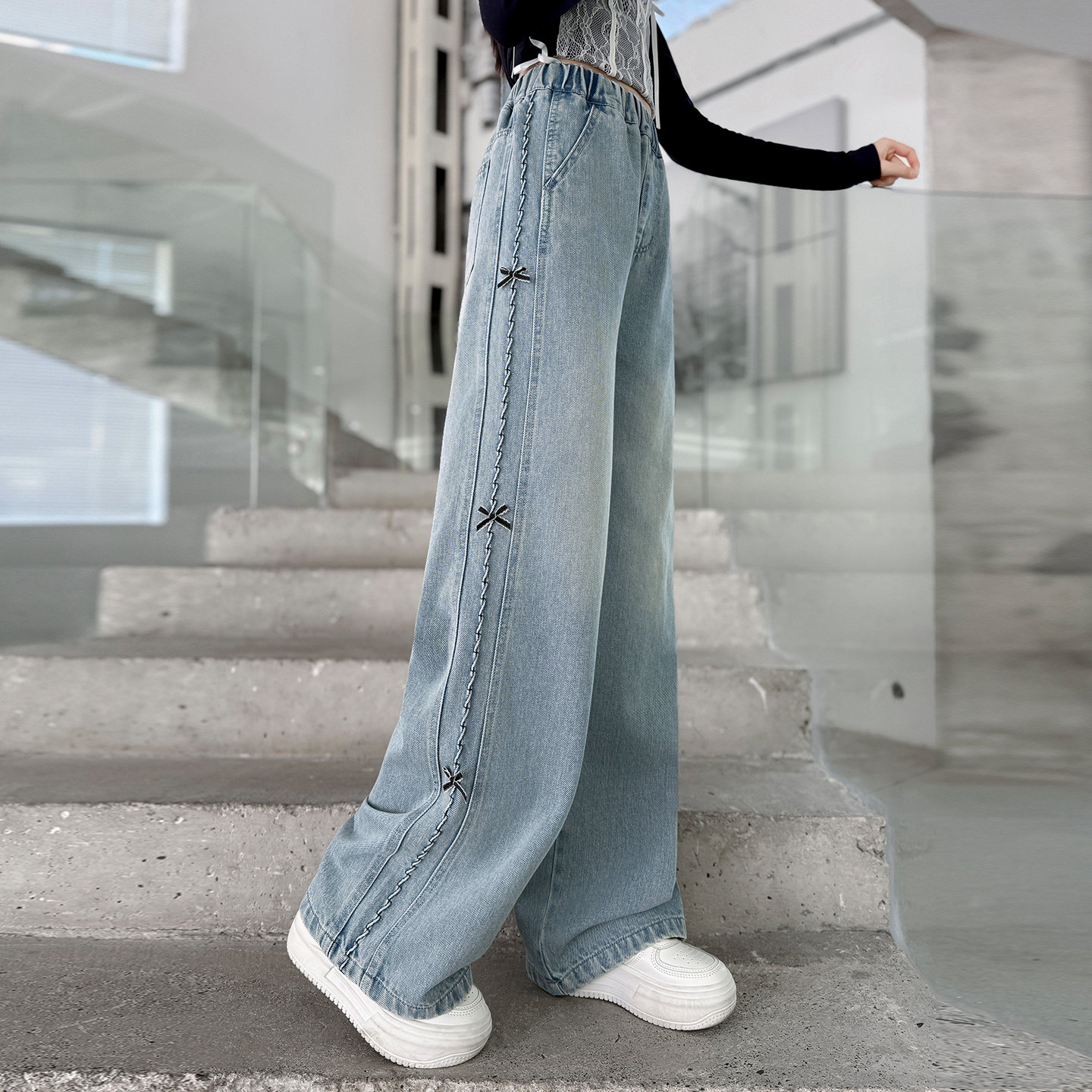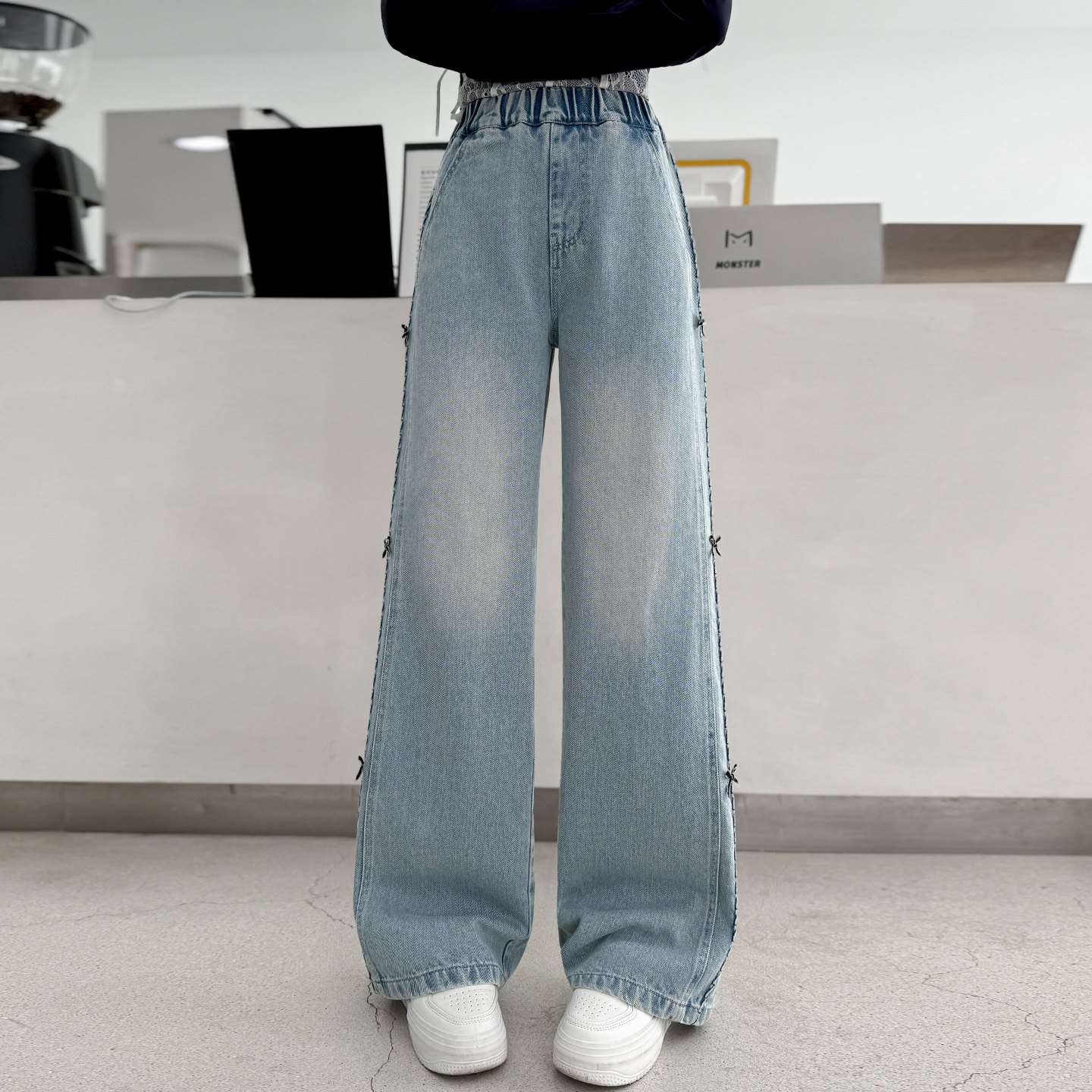 女童裤子春秋2026新款中大童直筒裤洋气儿童牛仔裤女孩窄版阔腿裤