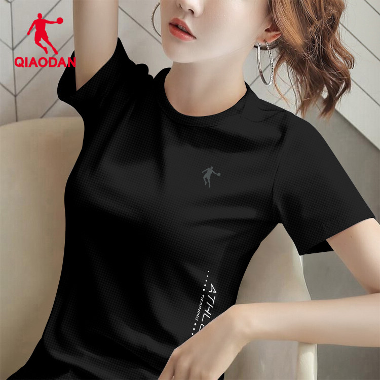 乔丹短袖女t恤白色圆领透气速干衣2026夏季新款瑜伽健身羽毛球服