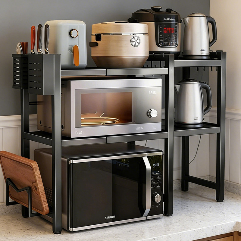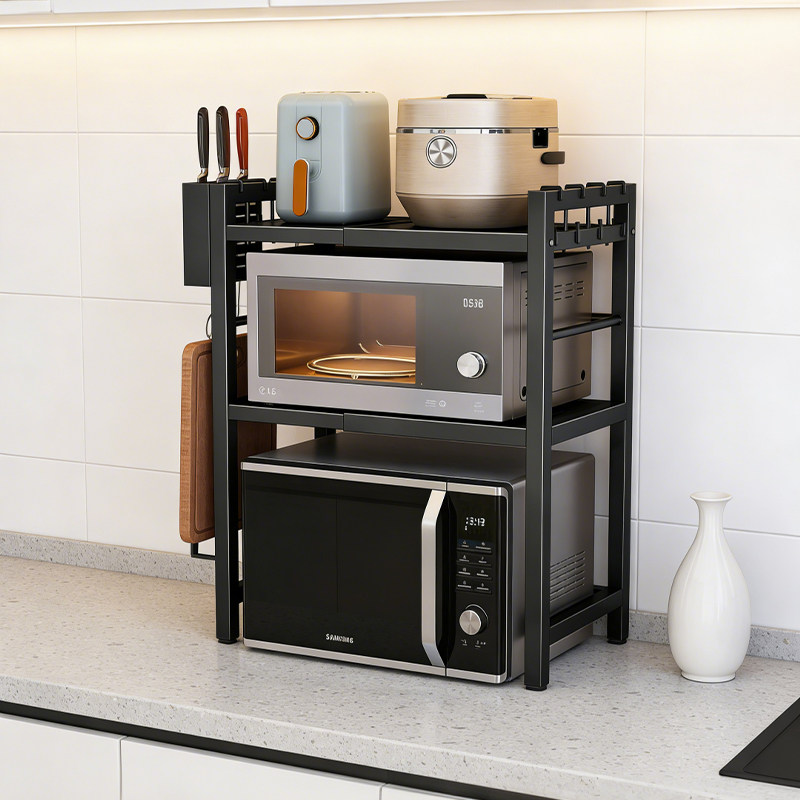 厨房微波炉置物架可伸缩家用多层烤箱架子台面电饭煲锅具收纳架子