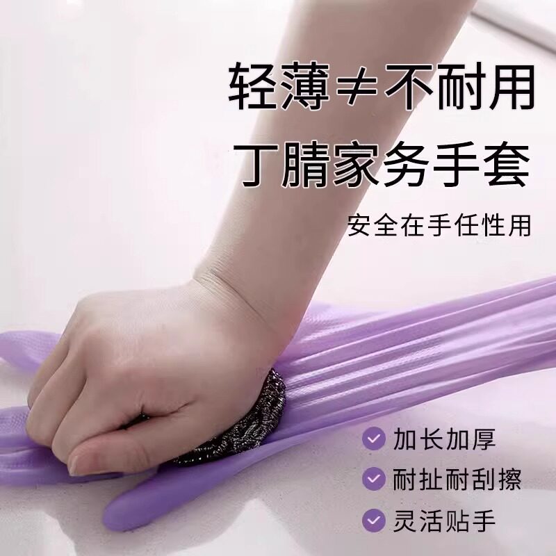 夏季薄款丁腈手套家务厨房洗碗耐用防水贴合防滑女士干活专用