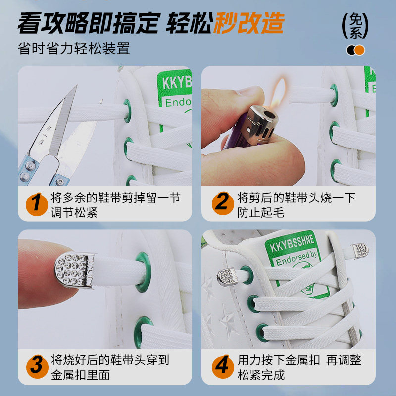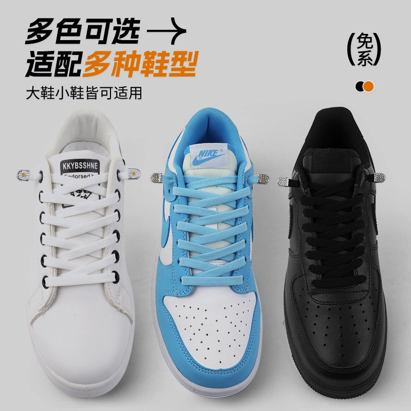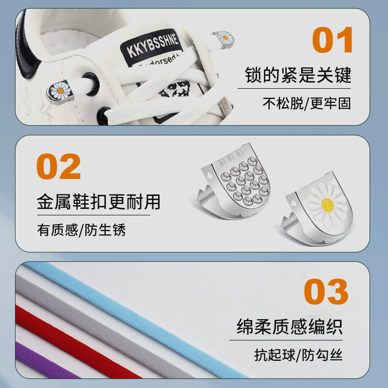 免系懒人鞋带松紧弹力女款扁纯白色鞋带镶钻按压扣儿童免绑固定器
