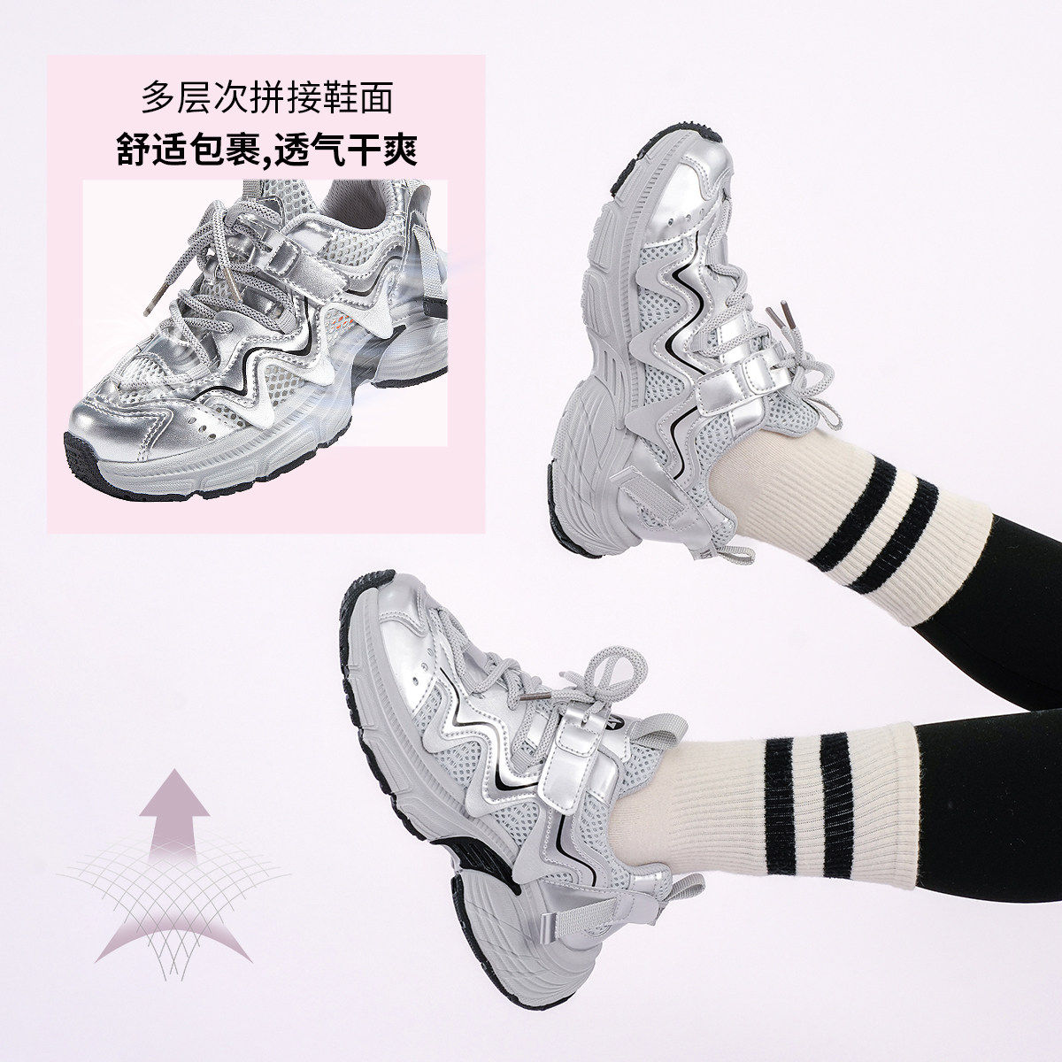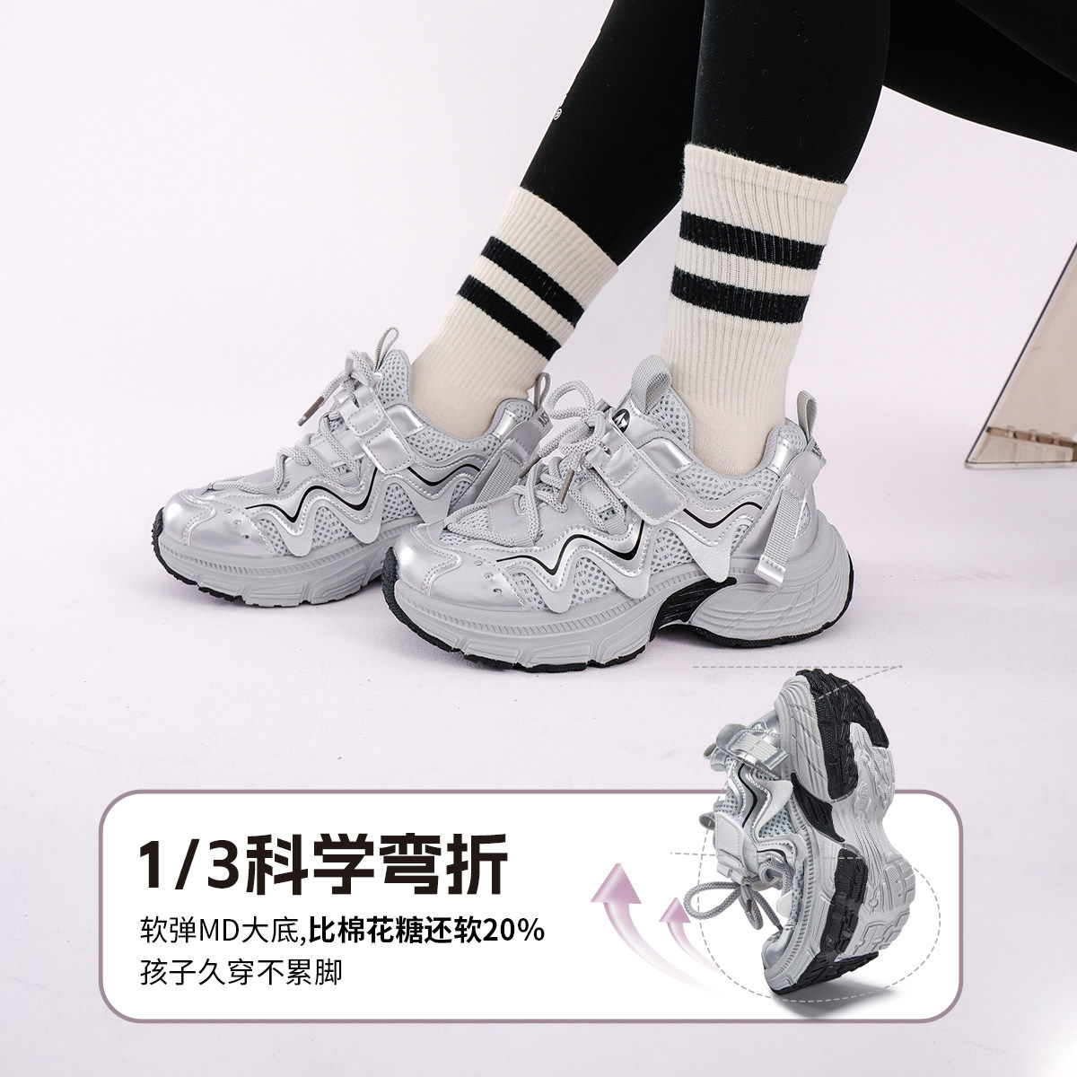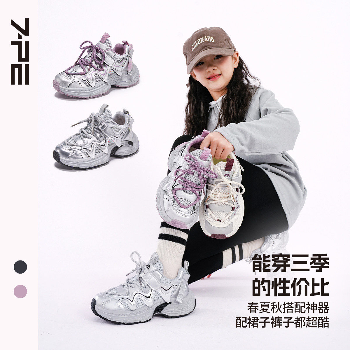 七波辉女童透气单网鞋儿童运动鞋2026春夏季新款小女孩休闲老爹鞋