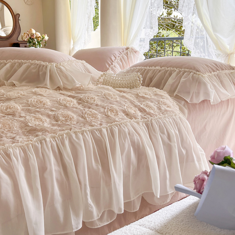 ins法式仙女蕾丝全棉床上四件套公主风100纯棉床单被套轻奢高级感