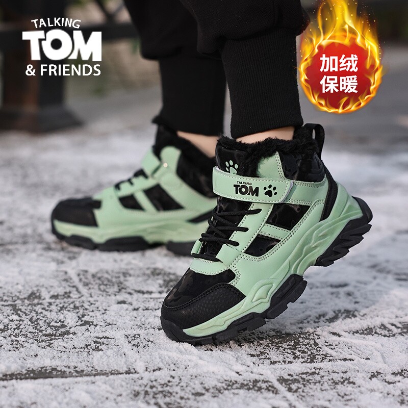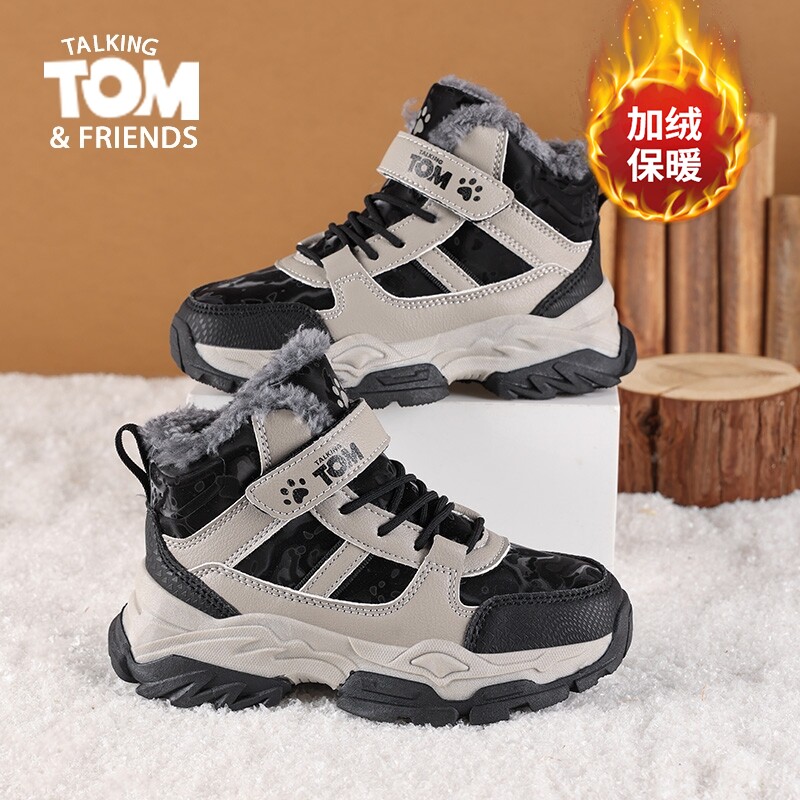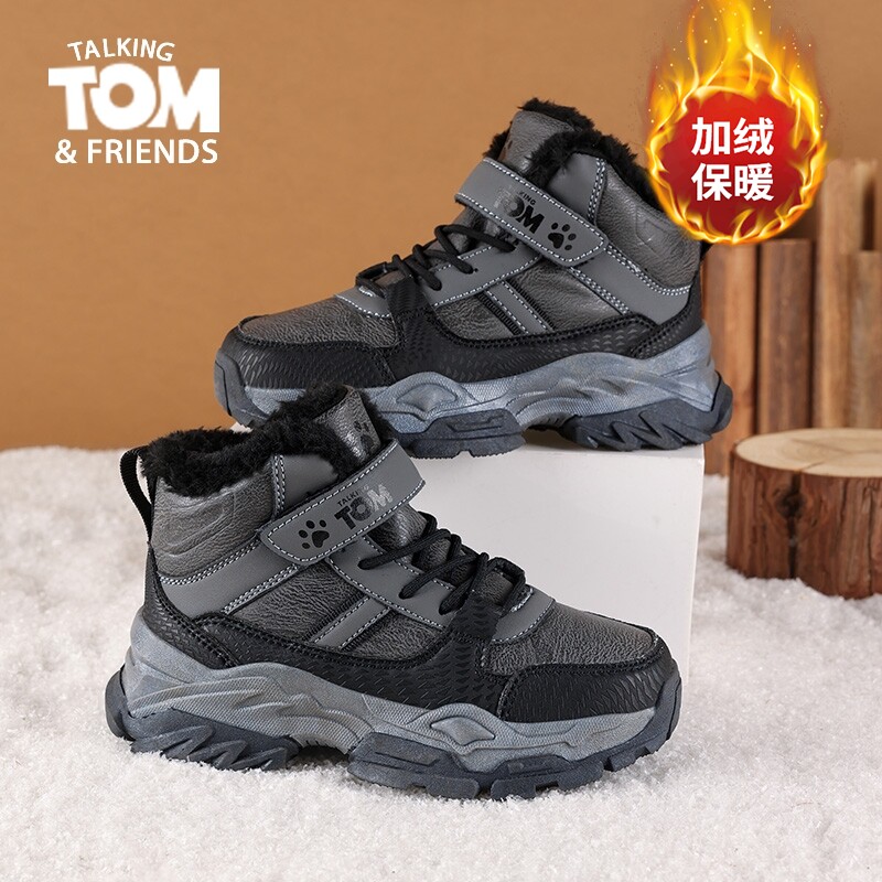 汤姆猫男童鞋子儿童棉鞋2026新款冬季加绒加厚保暖防滑狼爪雪地靴
