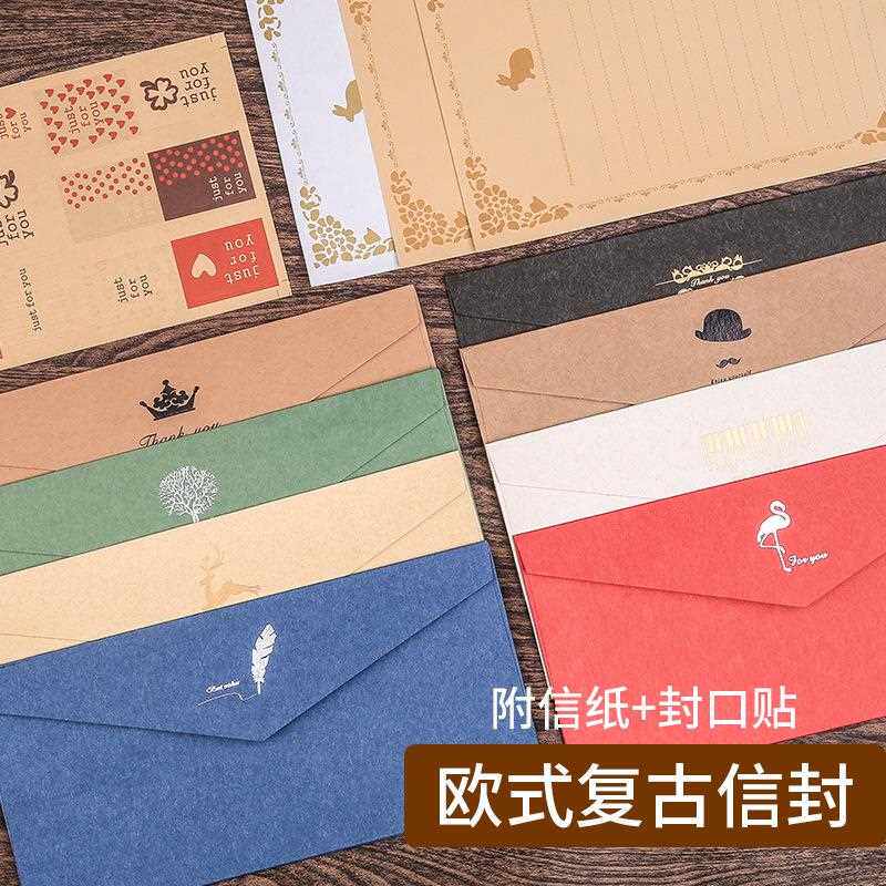 直销新款8个信封信纸套装牛皮纸烫金复古欧式邀请函婚庆请帖 西式