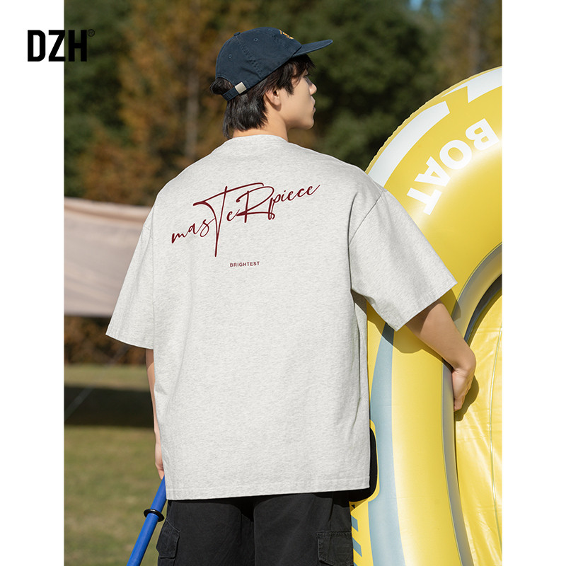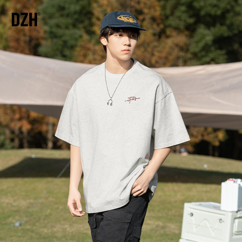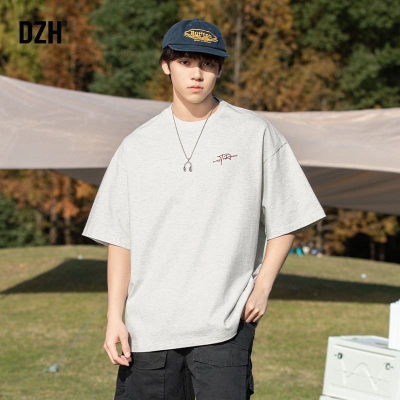男士浅灰色美式潮牌短袖t恤男款夏季纯棉半袖体恤衫2026新款上衣