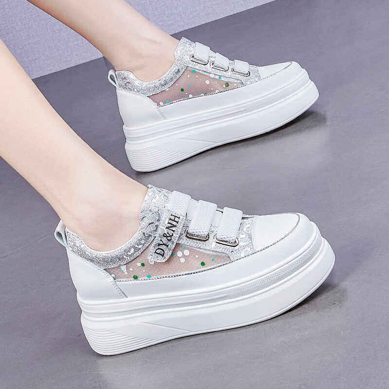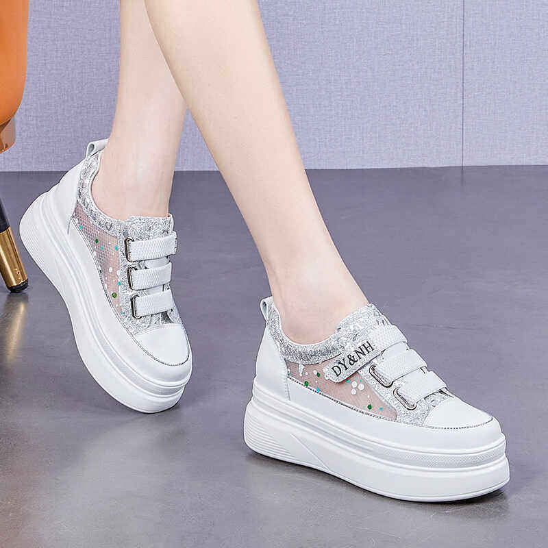 真皮小白鞋女2025新款网面透气内增高女鞋夏季薄款休闲鞋