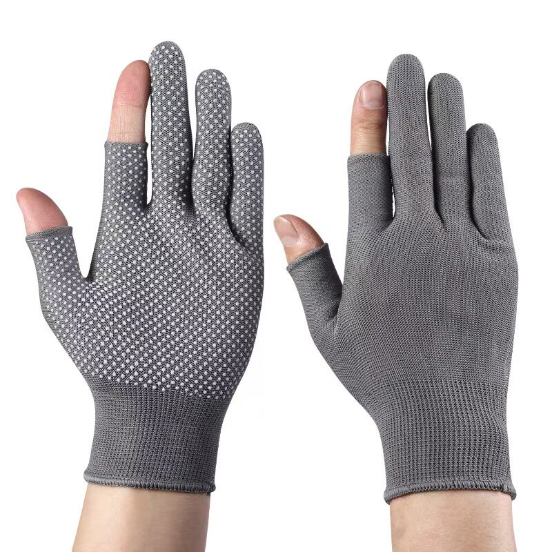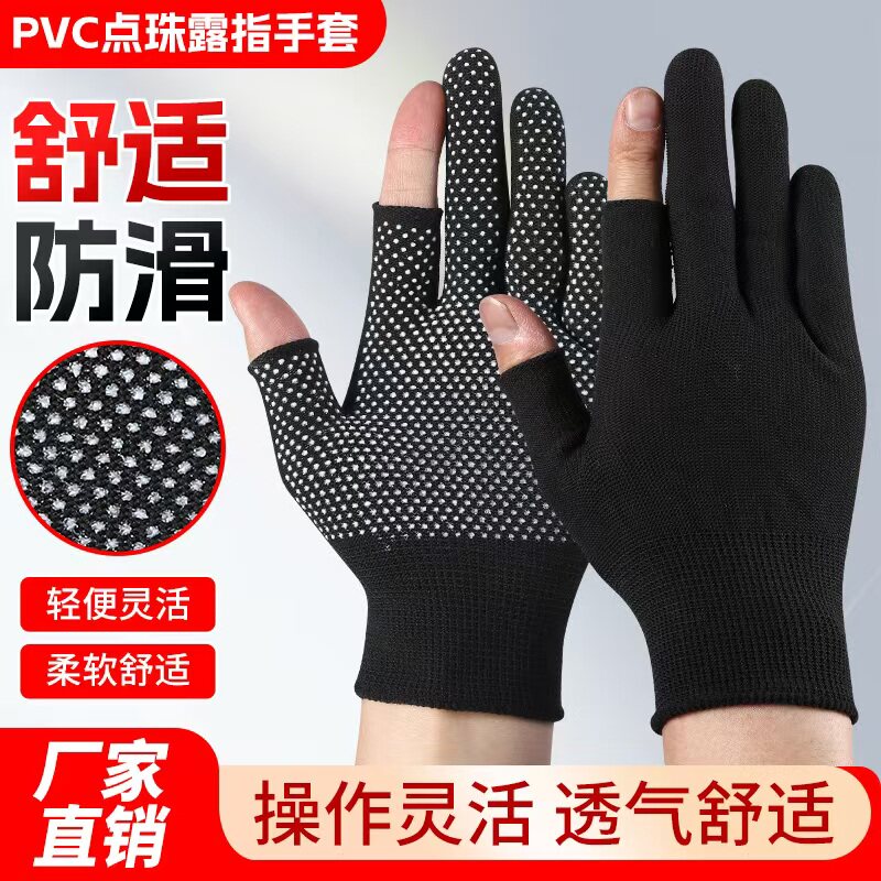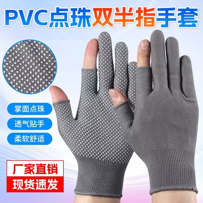 薄款点胶防滑露二指打包手套快递员专用分拣耐磨劳保工作男女骑行