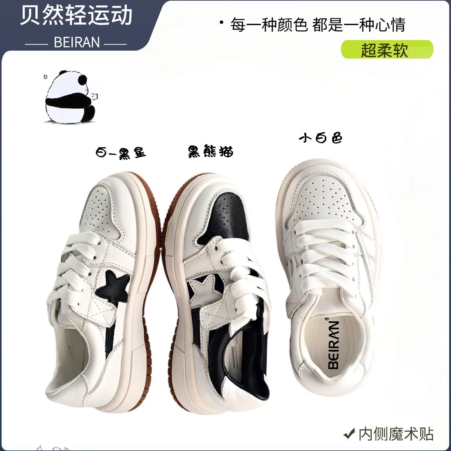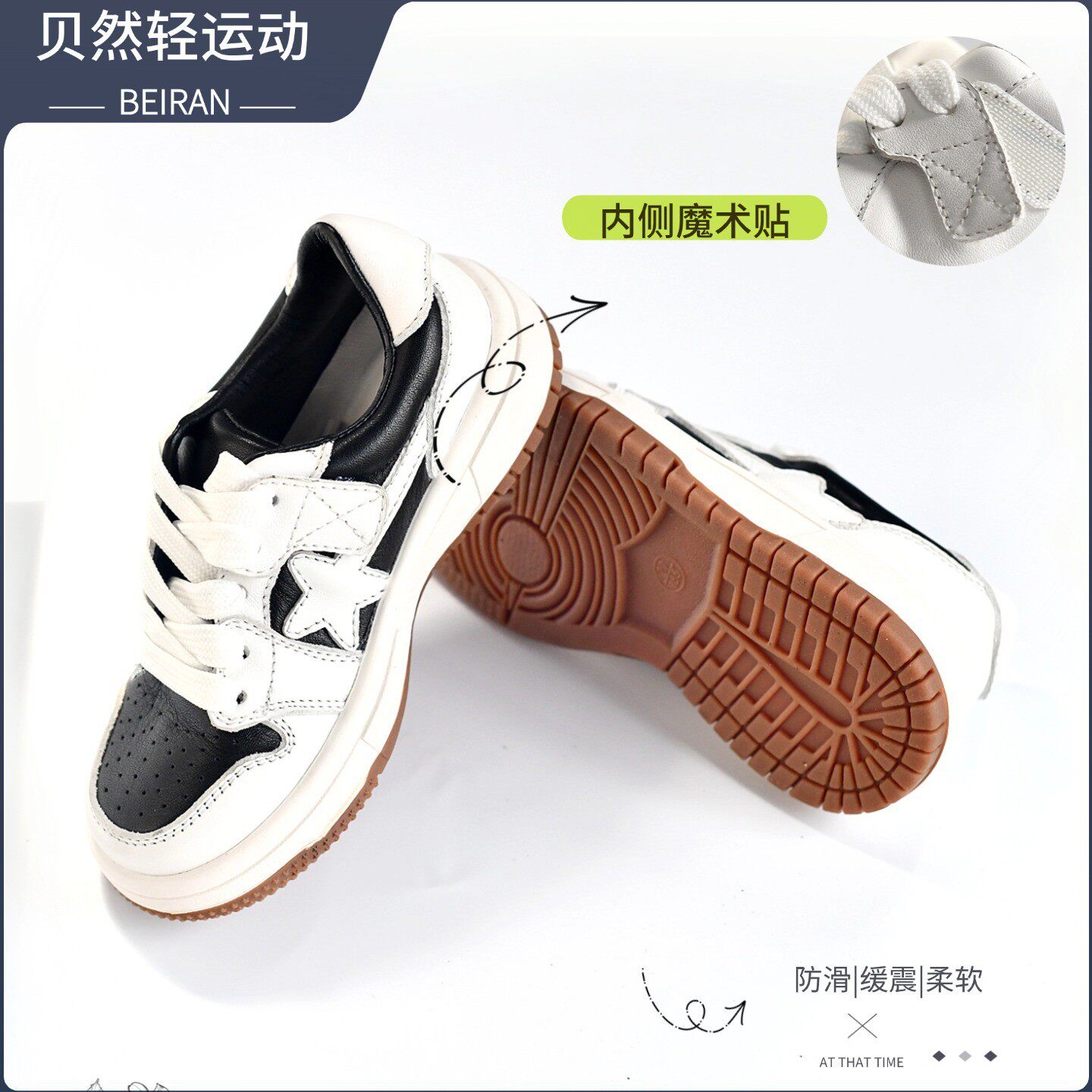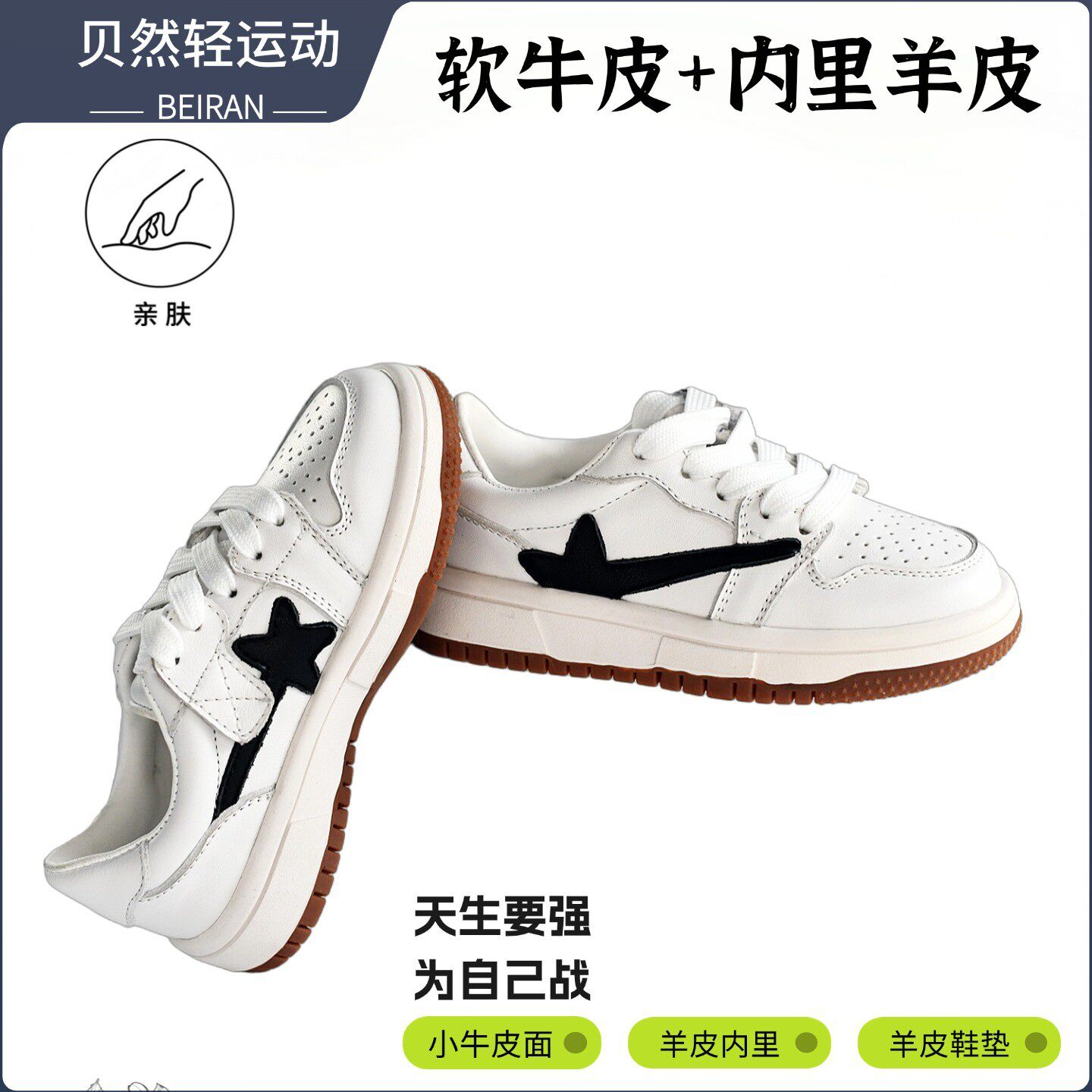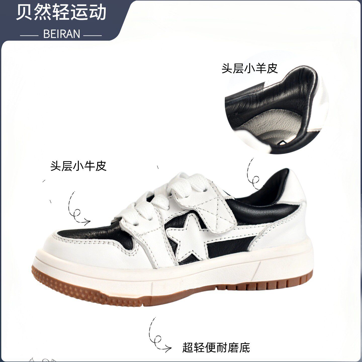 贝然儿童头层牛皮小白鞋幼儿中大小学生男女童春秋款跑步运动板鞋