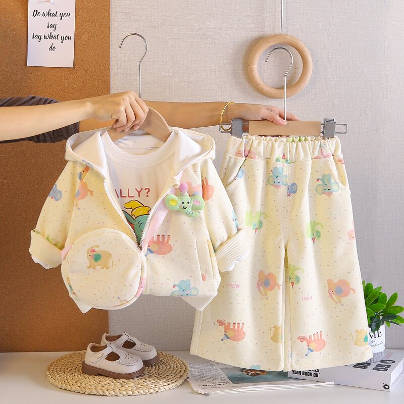 女童套装女宝宝春天衣服2026新款小女孩春装运动装休闲卫衣三件套