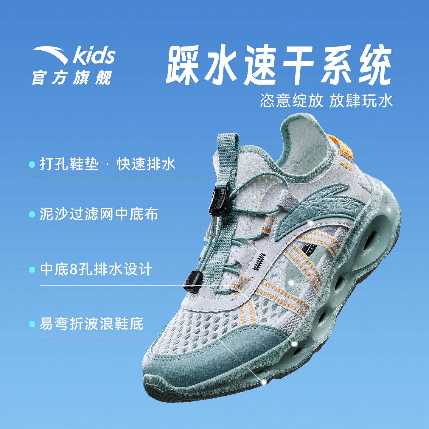 安踏儿童凉鞋男大童童网面透气低帮框子鞋2026夏季新款抽绳童鞋