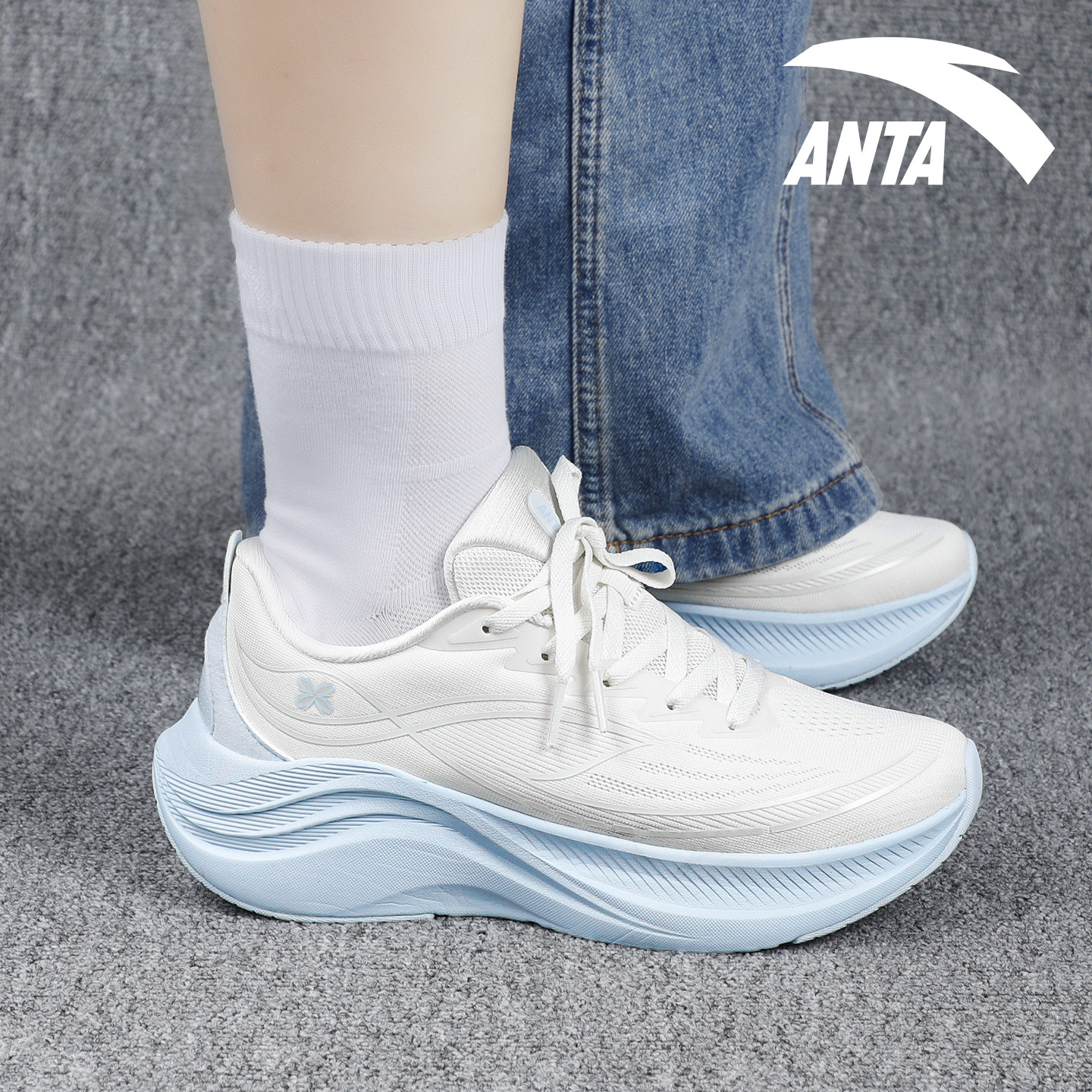 安踏叶子6女鞋跑步鞋软底减震新款冬季网面透气女款运动鞋子跑鞋