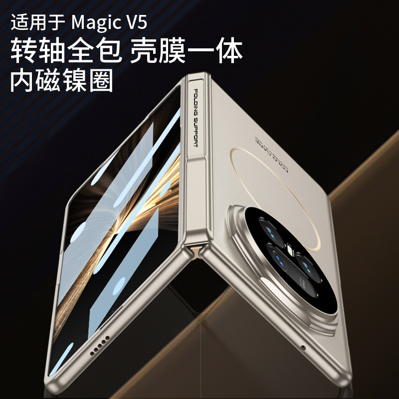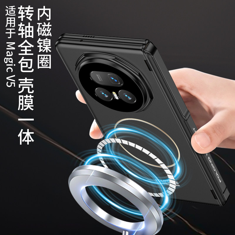 GKK 适用荣耀magicv5手机壳v5保护套全包新款轻薄magic磁吸v3超薄折叠屏华为全包铰链中轴华为折叠外壳带支架